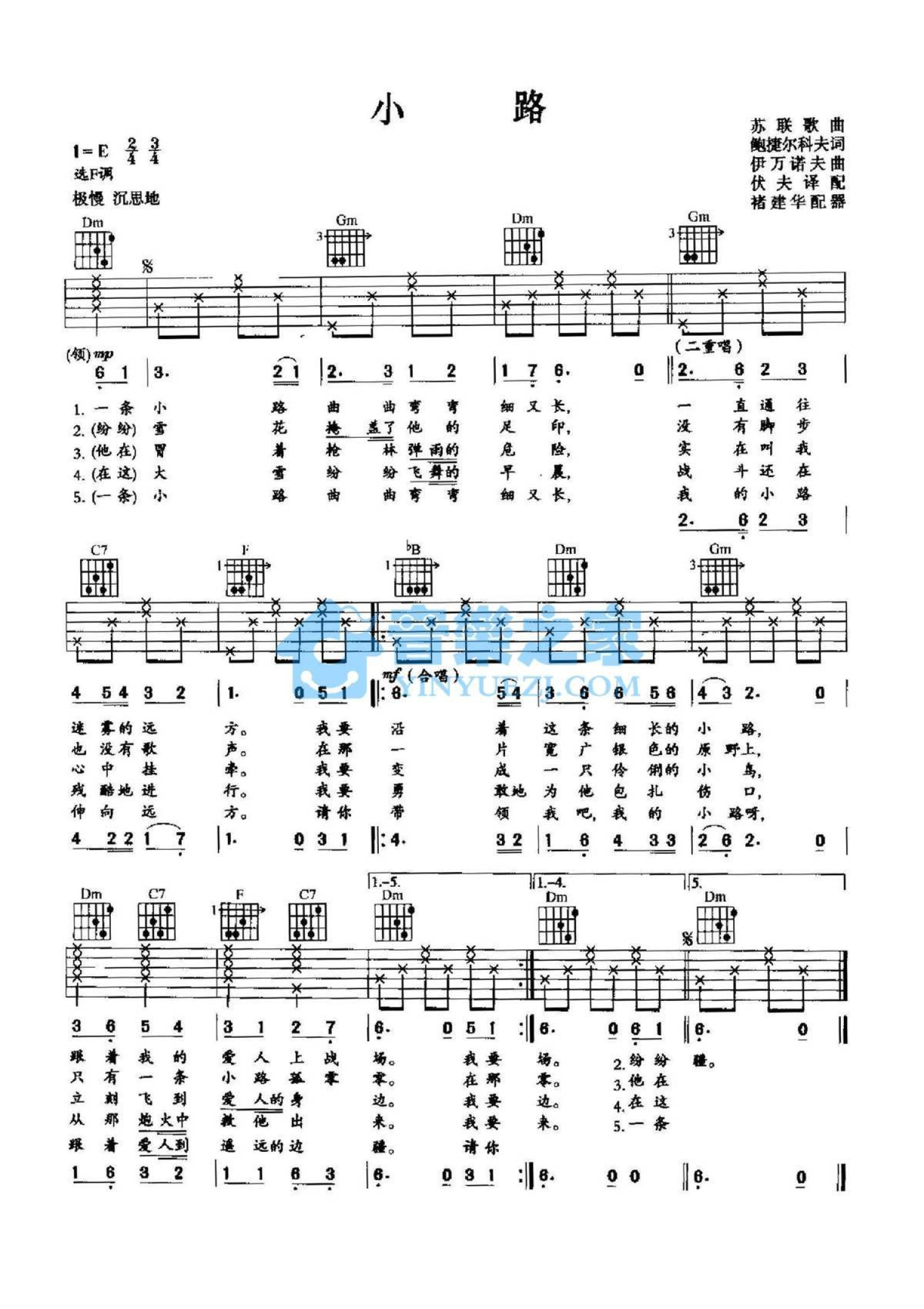曲谱介绍: F调版《小路》吉他弹唱六线谱