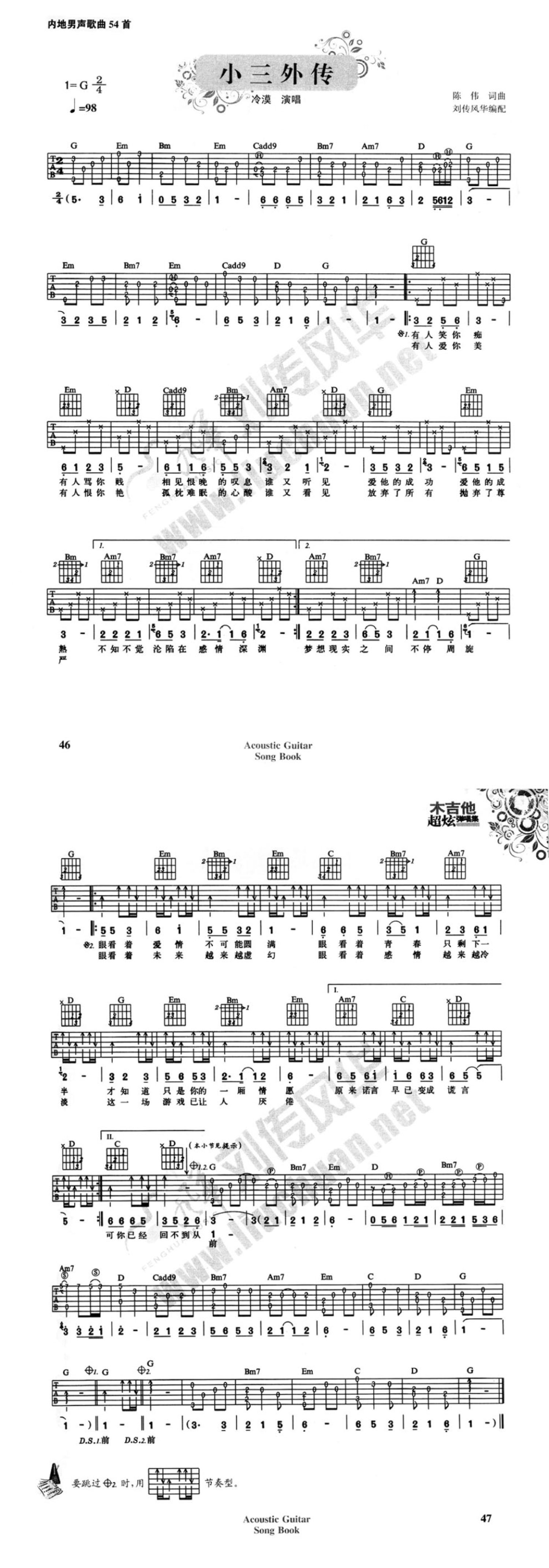 曲谱介绍: G调版《小三外传》吉他弹唱六线谱