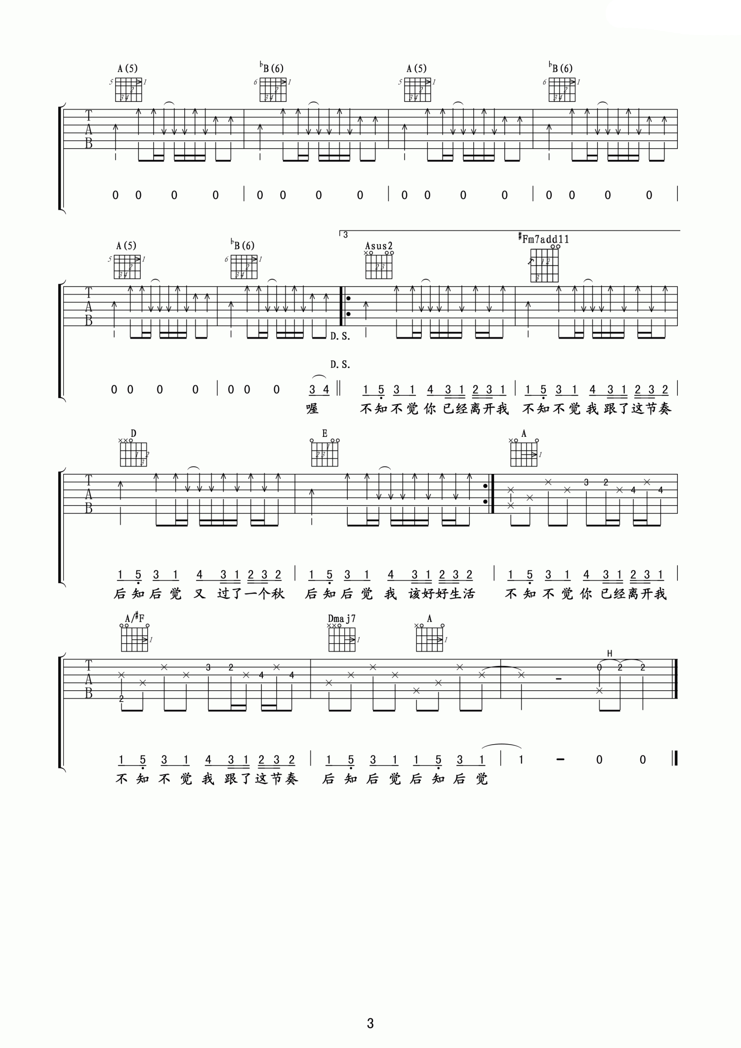 吉他弹唱A调来源:卢家兴1255 浏览2018-03-19 13:34发布图谱共3页