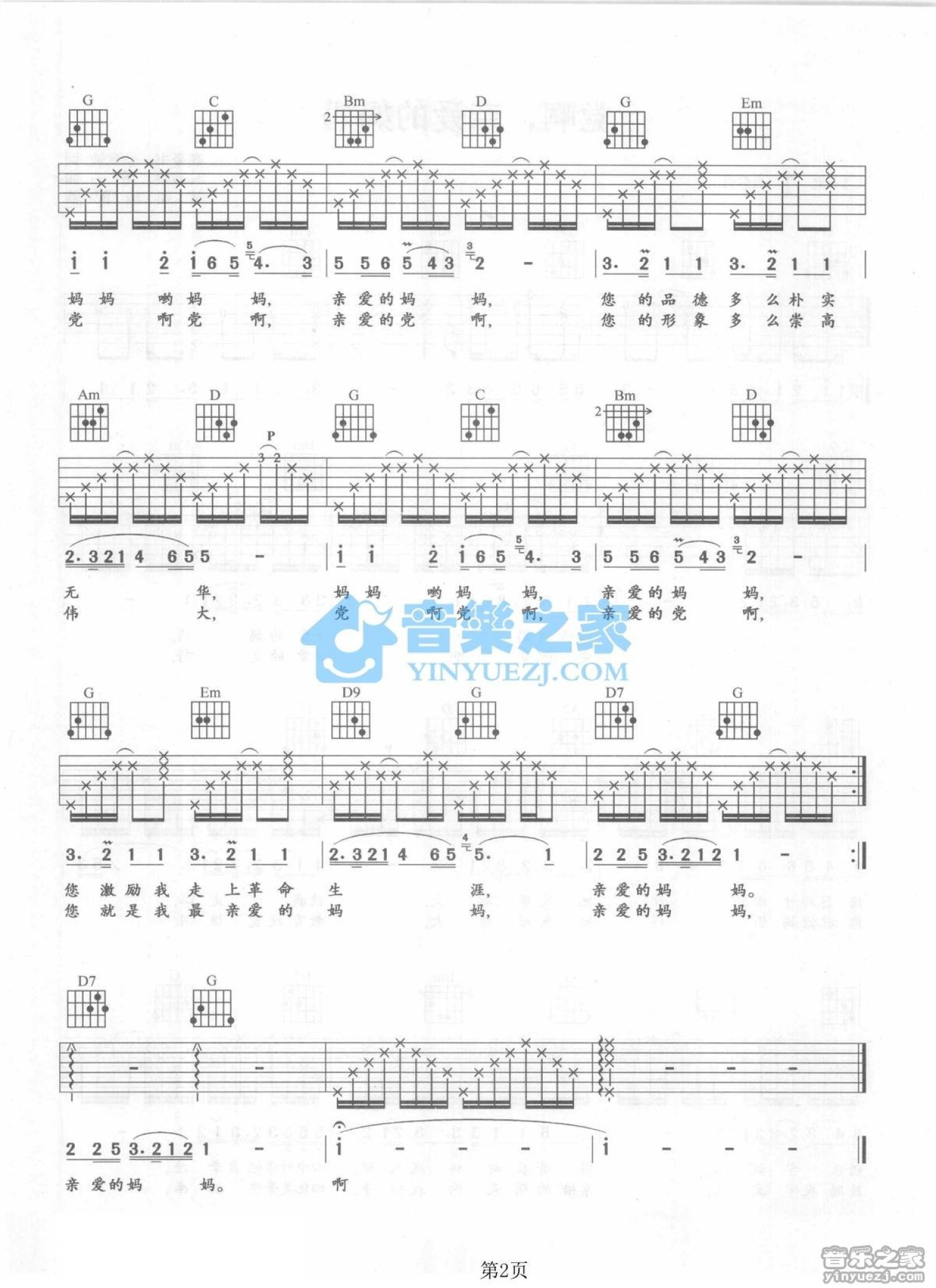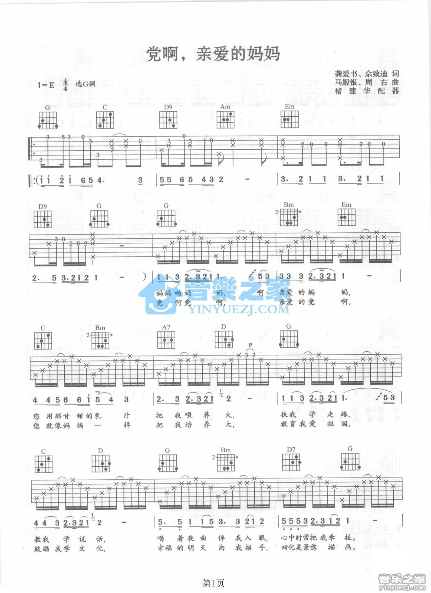 曲谱介绍: G调版殷秀梅《党啊亲爱的妈妈》吉他弹唱六线谱