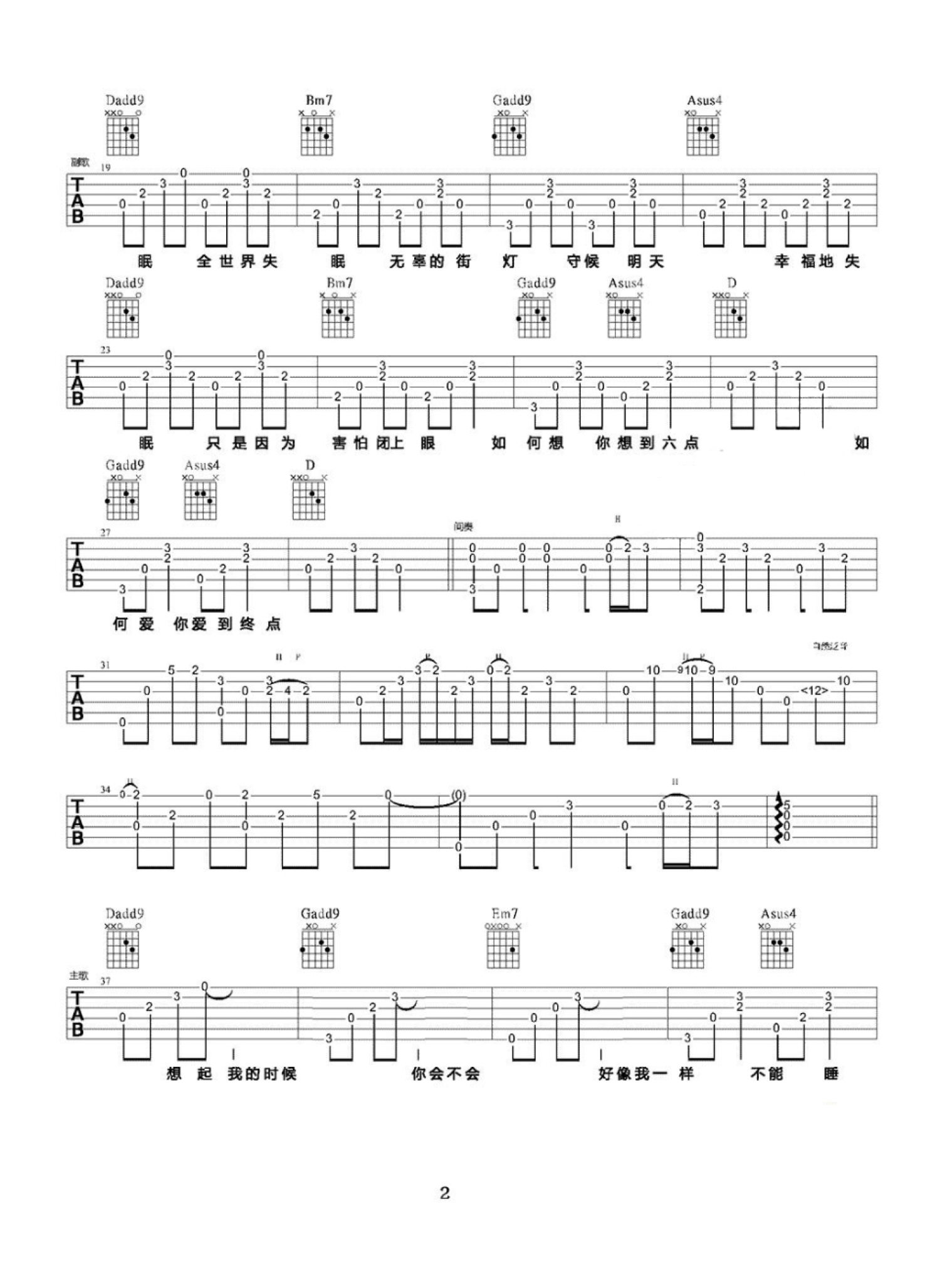 当前位置:琴谱网>吉他弹唱>全世界失眠