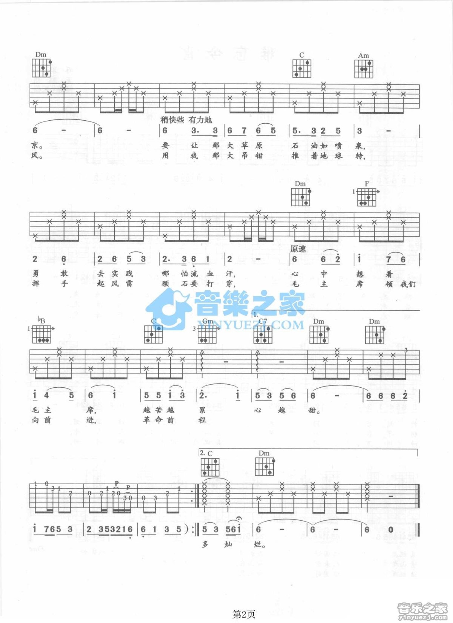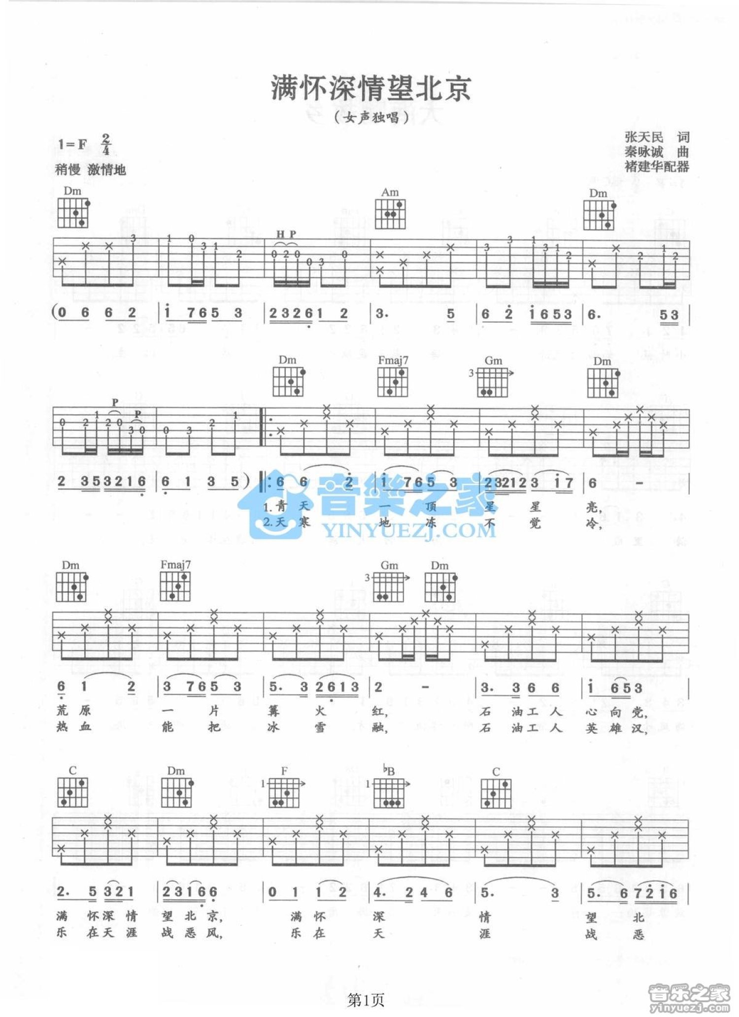 曲谱介绍: F调版梦鸽《满怀深情望北京》吉他弹唱六线谱