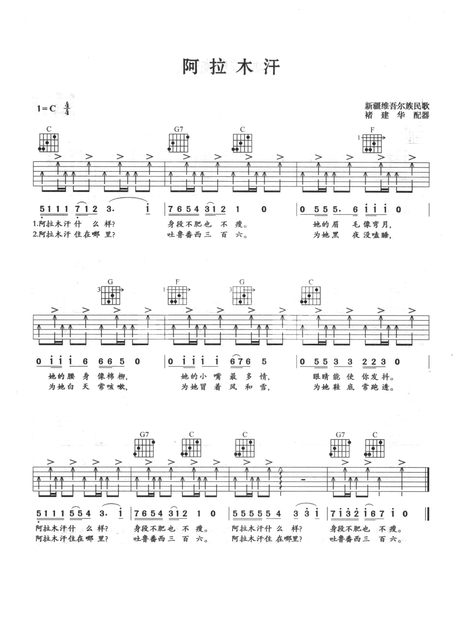 阿拉木汗吉他谱 - 新疆民歌 - C调吉他弹唱谱