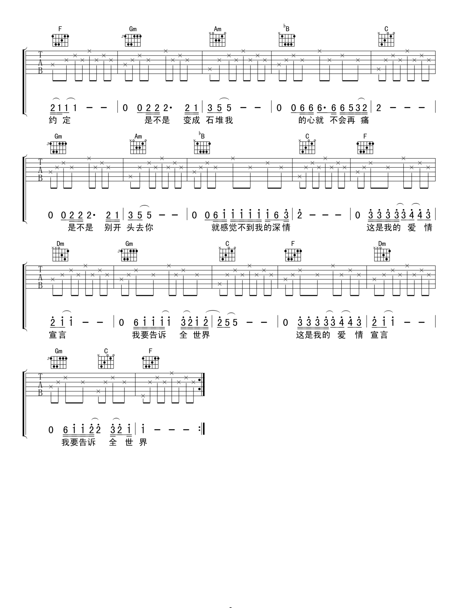 当前位置:琴谱网>吉他弹唱>爱情宣言