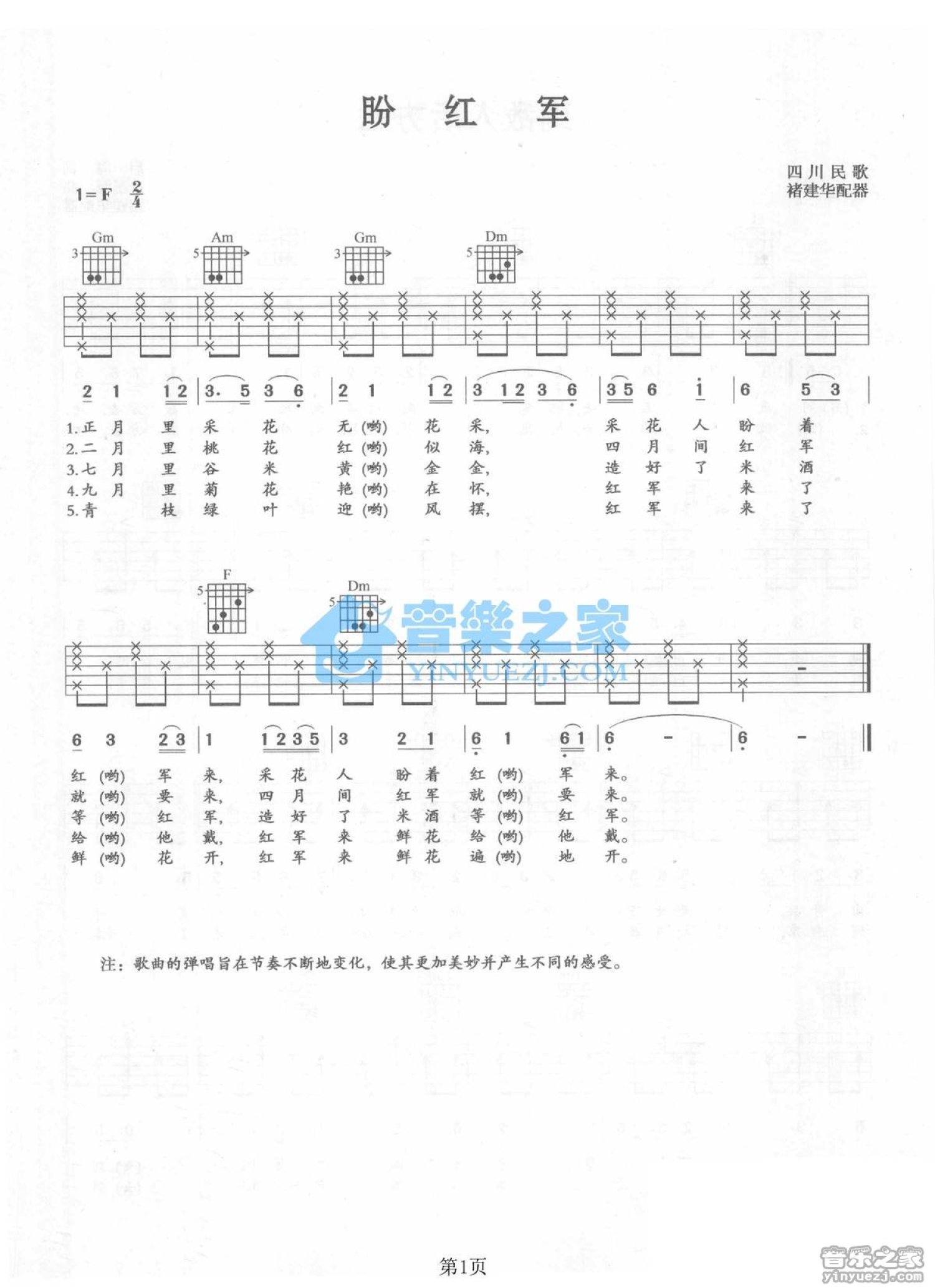 盼红军吉他谱 - 四川民歌 - F调吉他弹唱谱