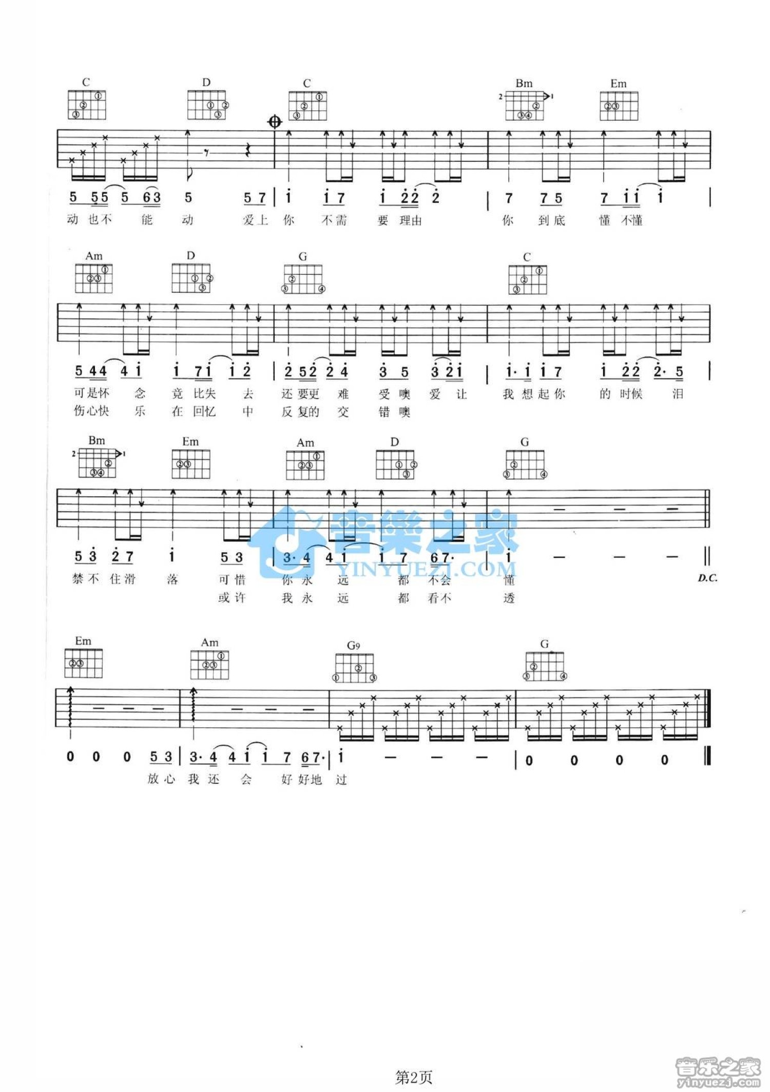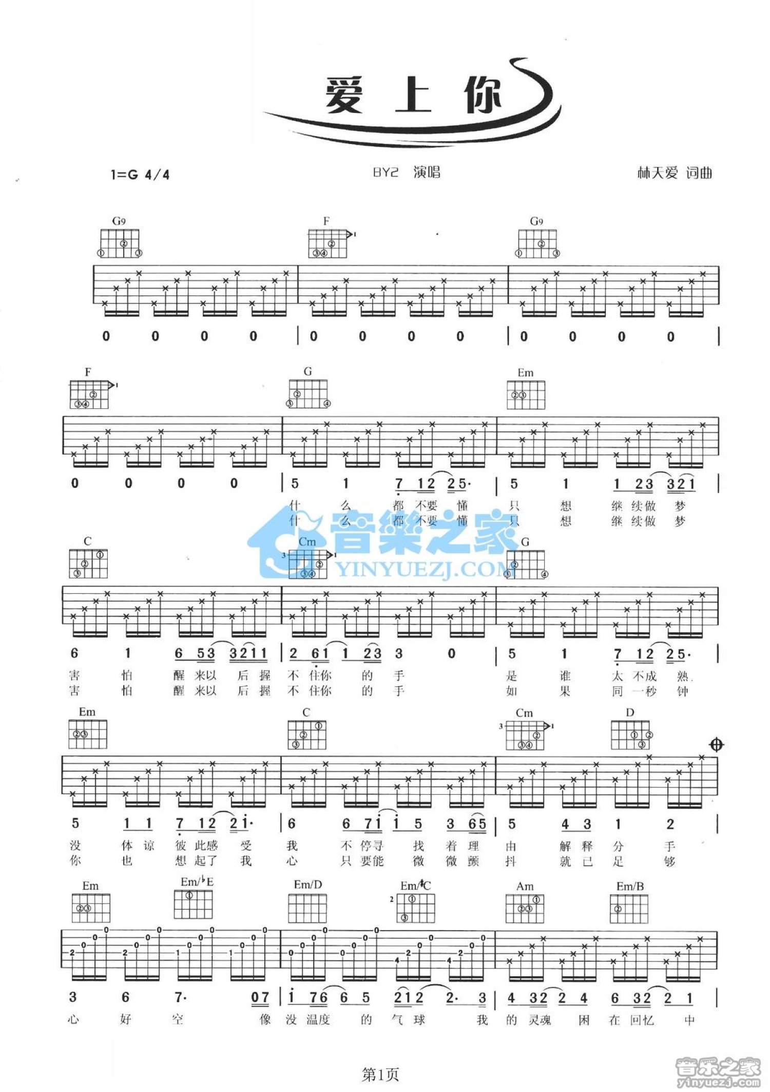 曲谱介绍: G调简单版BY2《爱上你》吉他弹唱六线谱