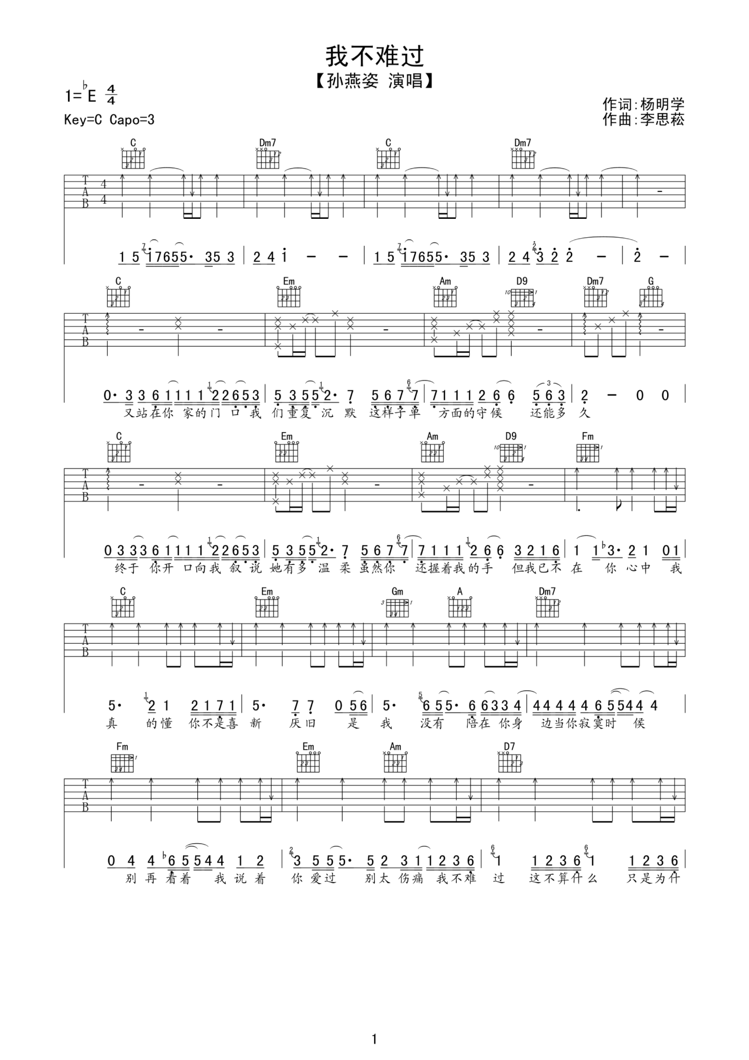 我不难过吉他谱 - 孙燕姿 - C调吉他弹唱谱
