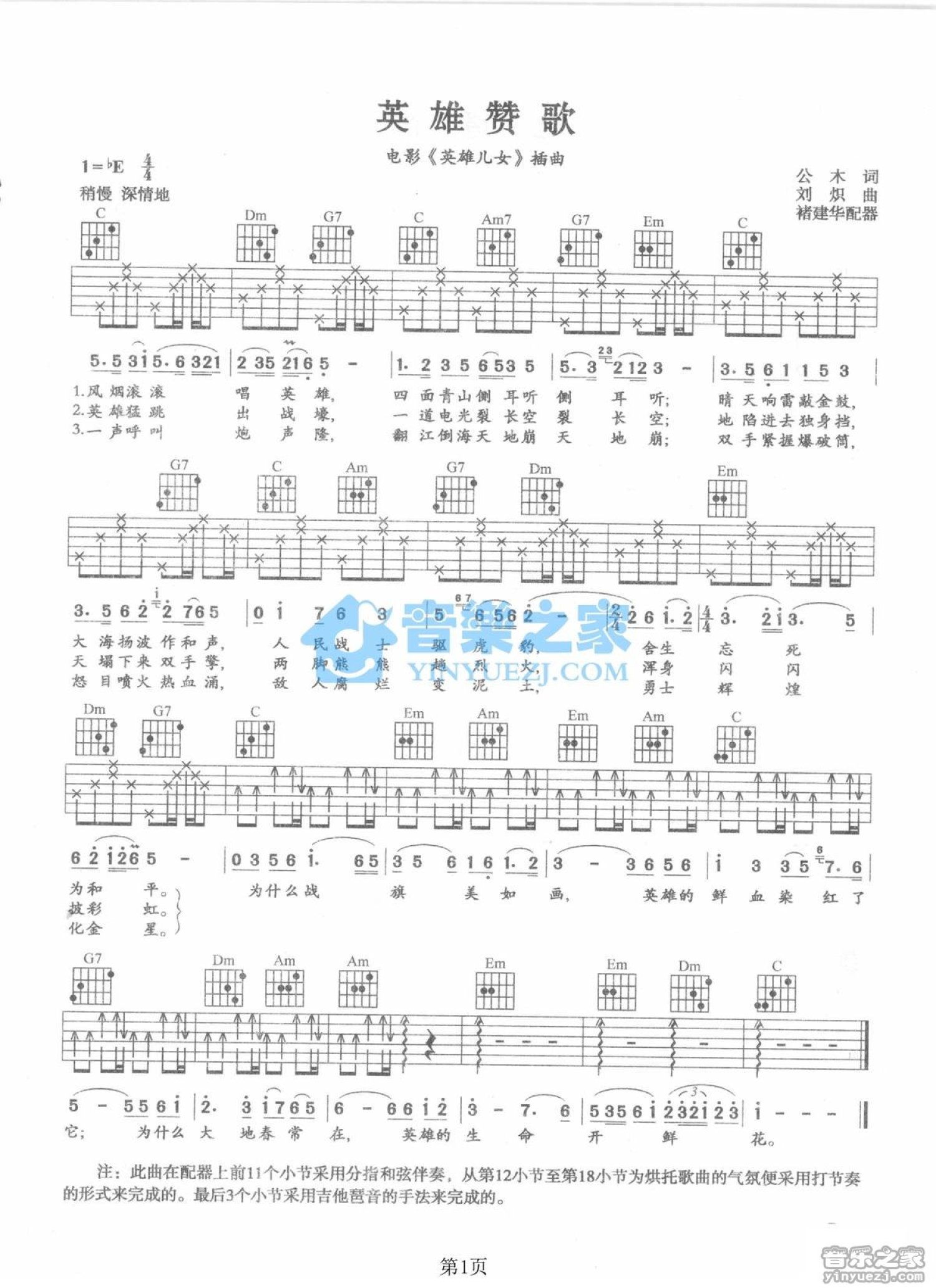 当前位置:琴谱网>吉他弹唱>英雄赞歌