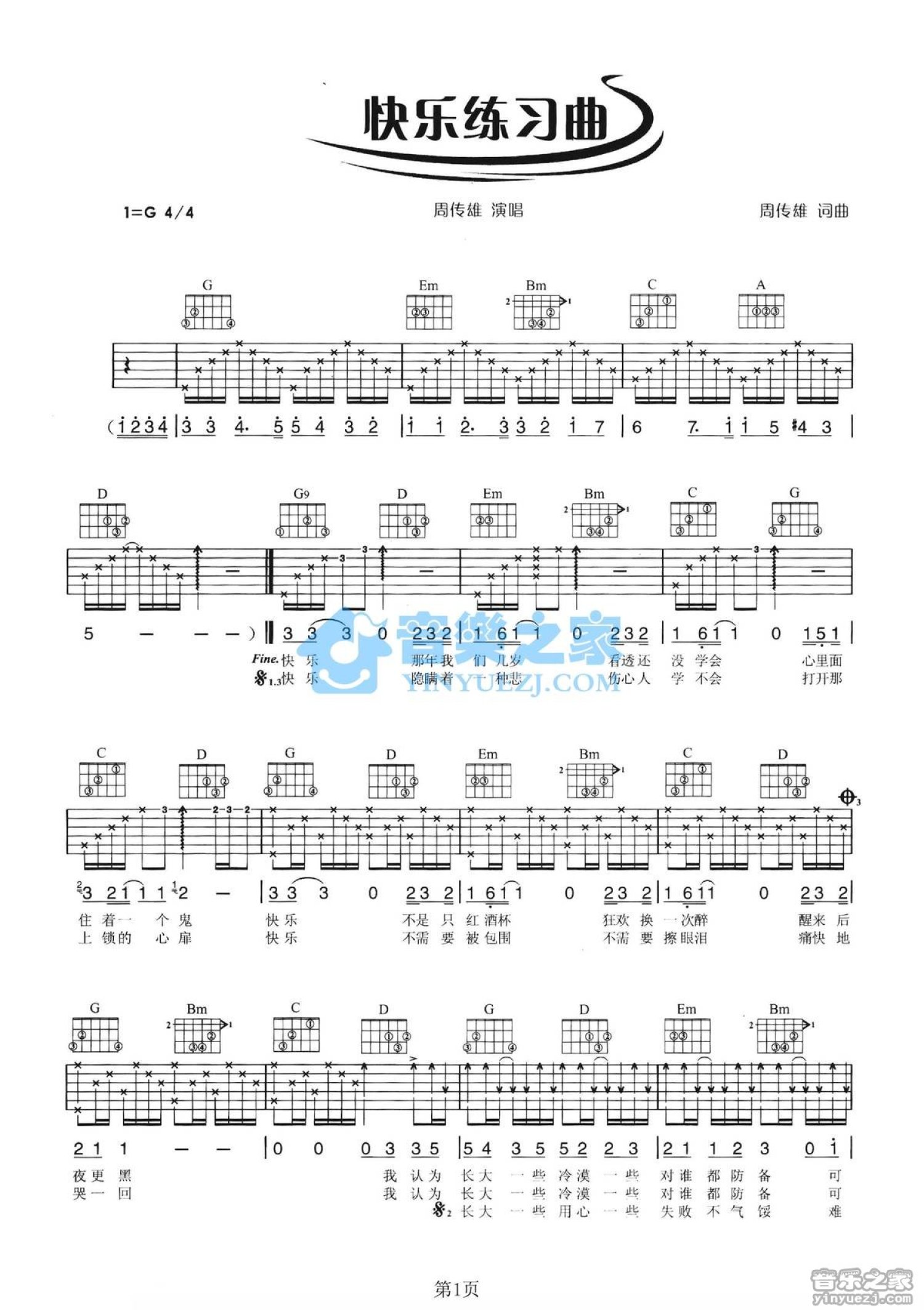 快乐练习曲吉他谱 - 周传雄 - G调吉他弹唱谱