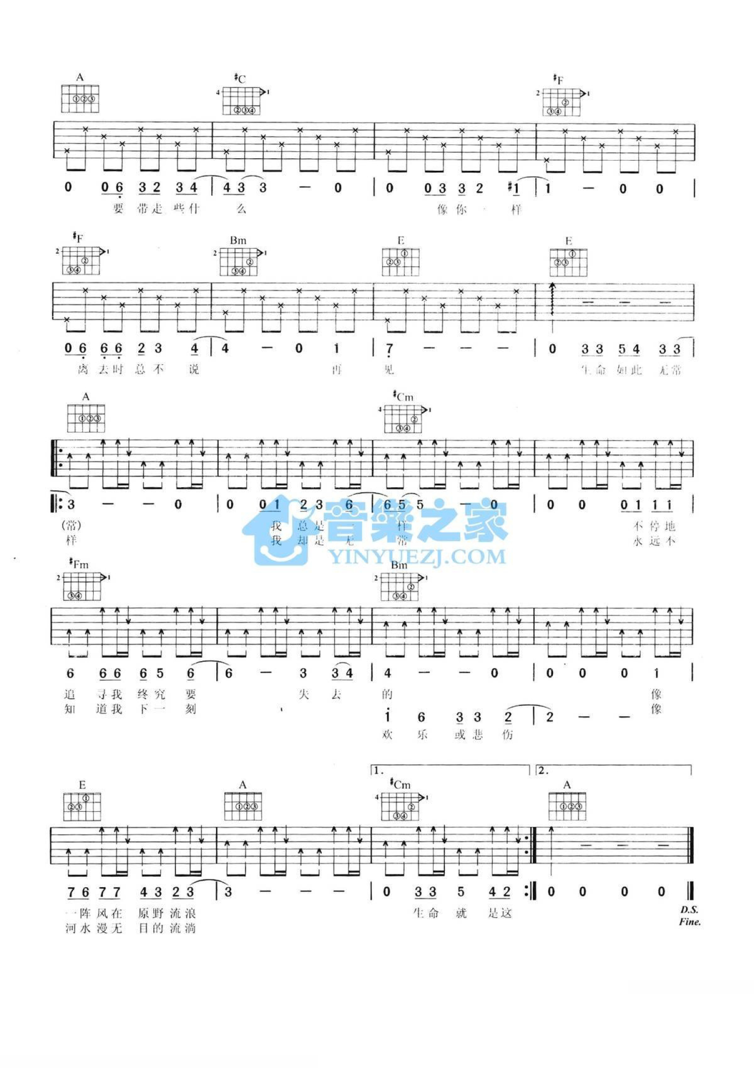 曲谱介绍: A调版李健《璀璨》吉他弹唱六线谱