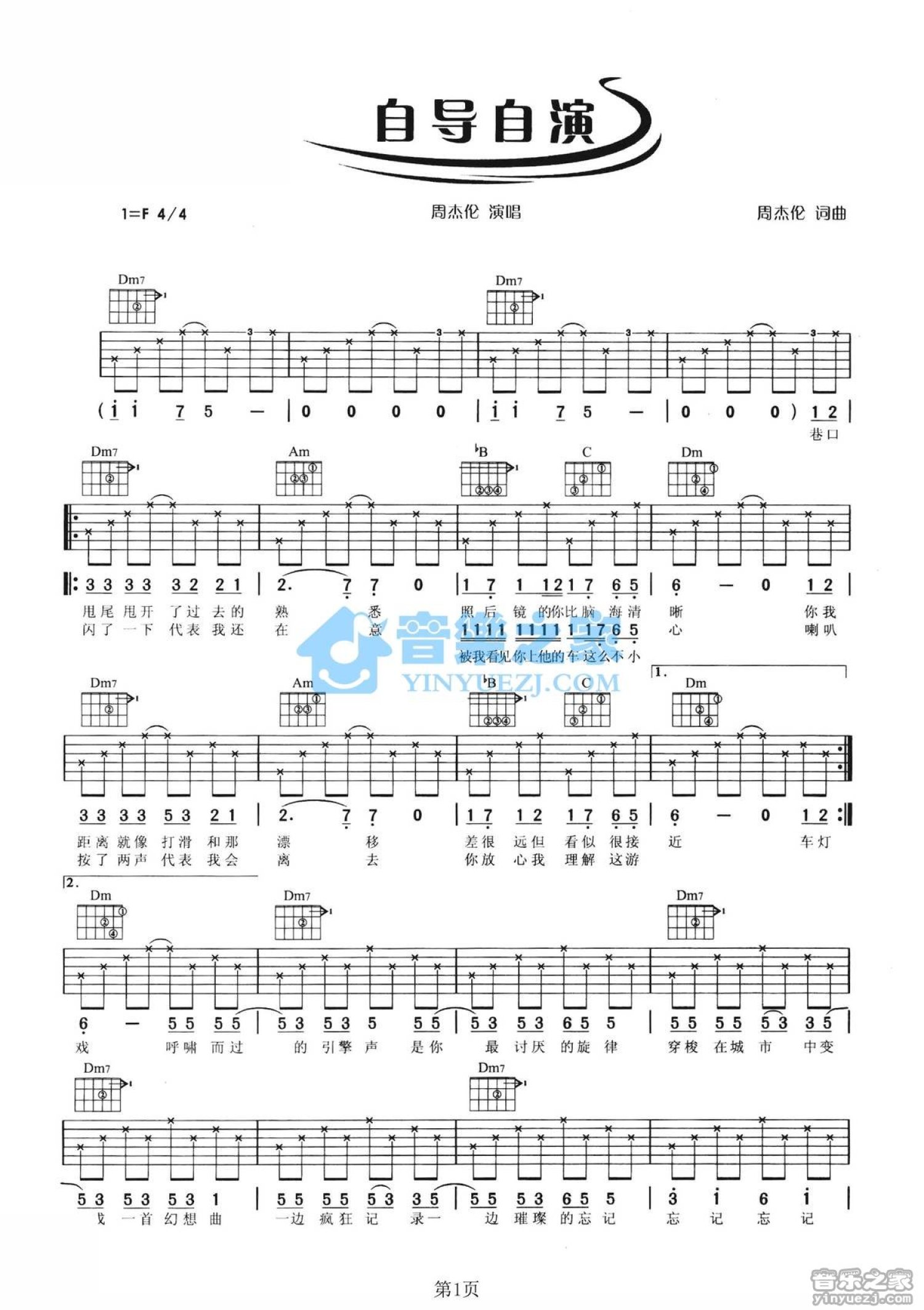 自导自演吉他谱 - 周杰伦 - F调吉他弹唱谱