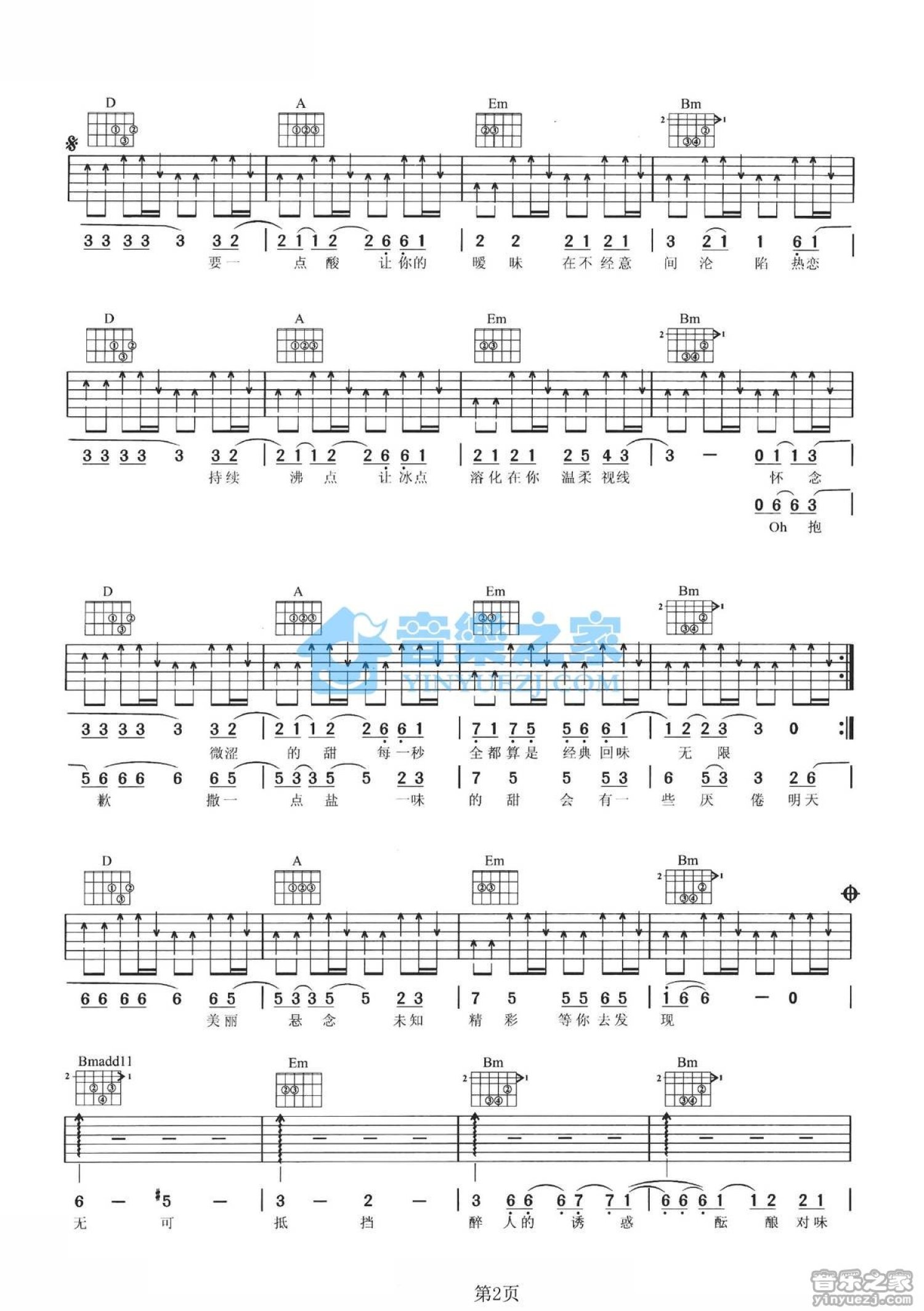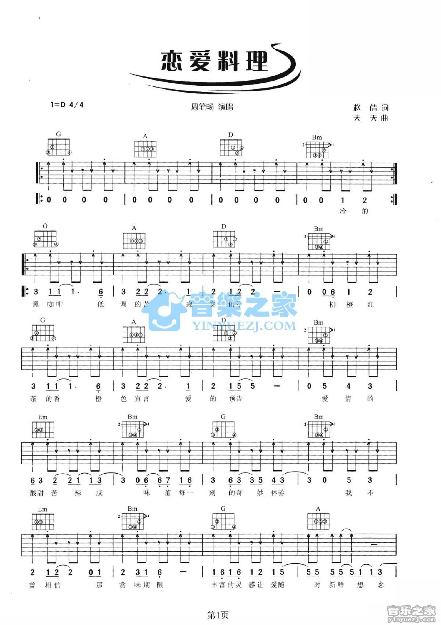 曲谱介绍: D调版周笔畅《恋爱料理》吉他弹唱六线谱