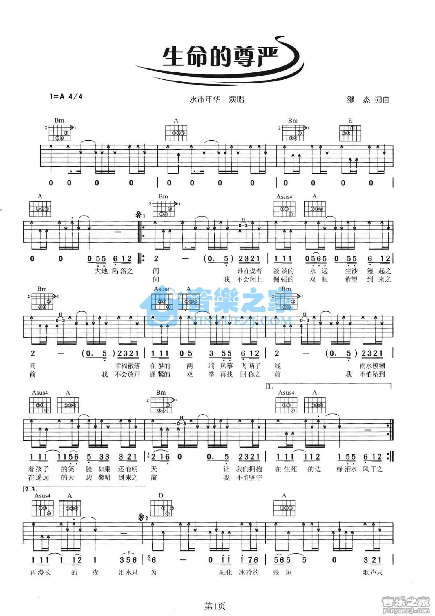 曲谱介绍: A调版水木年华《生命的尊严》吉他弹唱六线谱