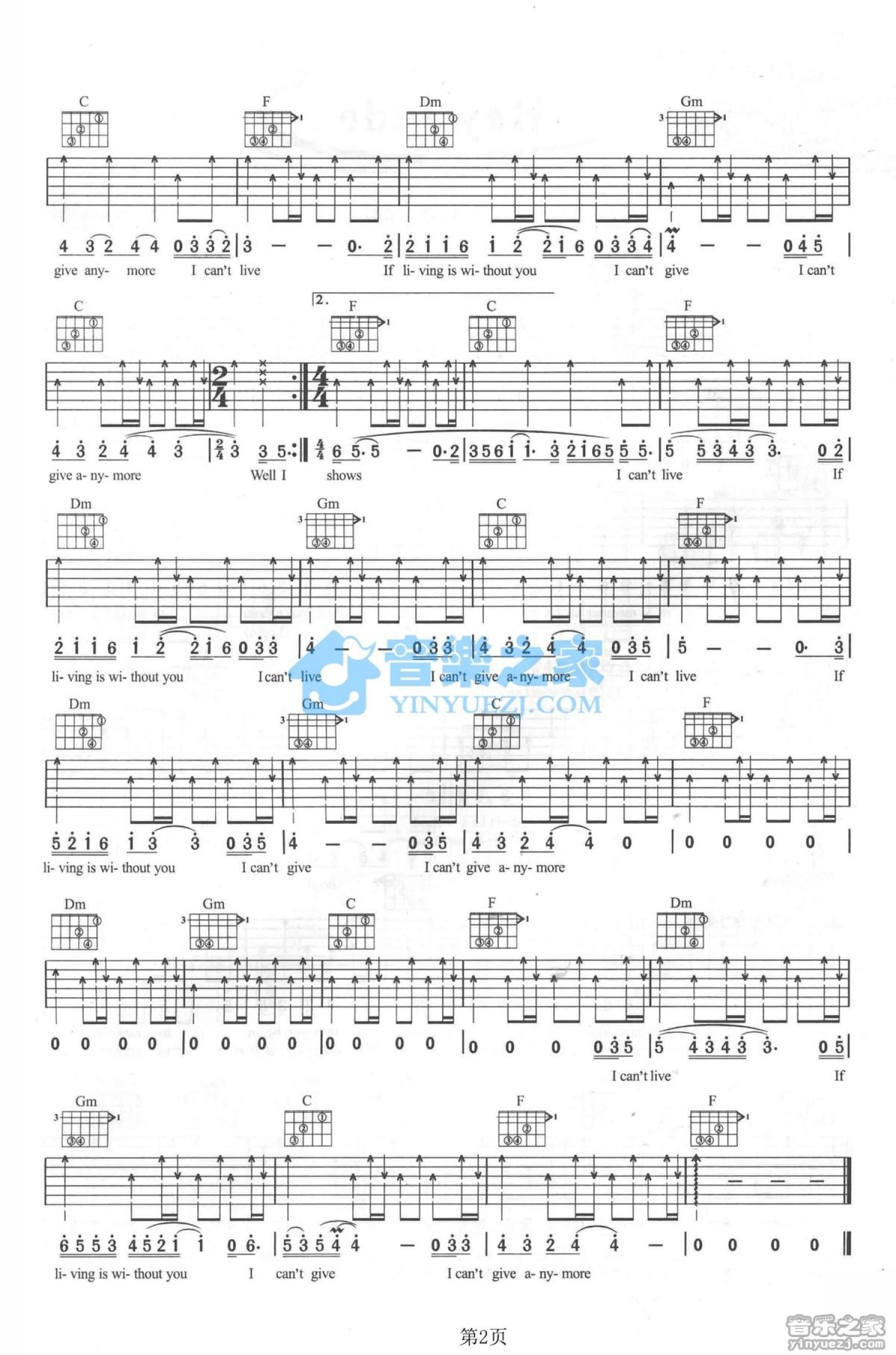 当前位置:琴谱网>吉他弹唱>Without You