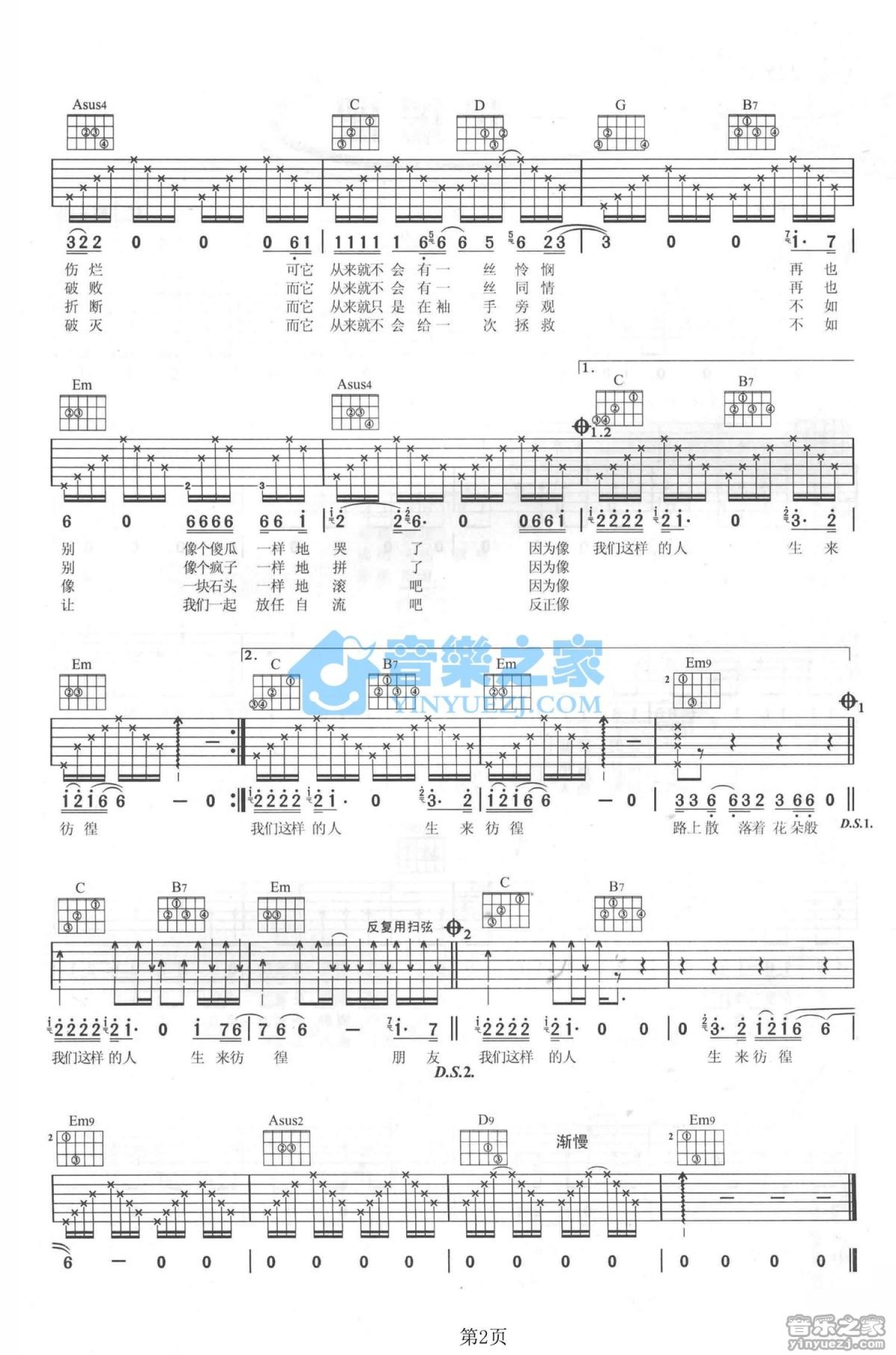 曲谱介绍: G调版《生来彷徨》吉他弹唱六线谱