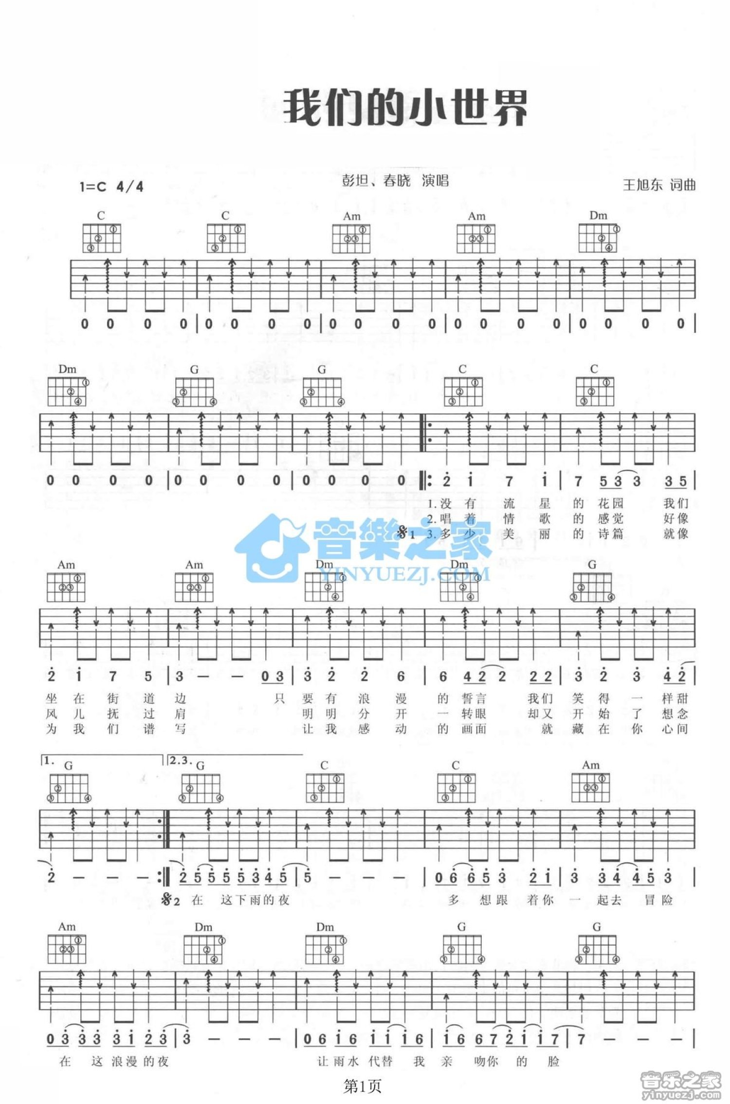 我们的小世界吉他谱 - 彭坦/春晓 - C调吉他弹唱谱
