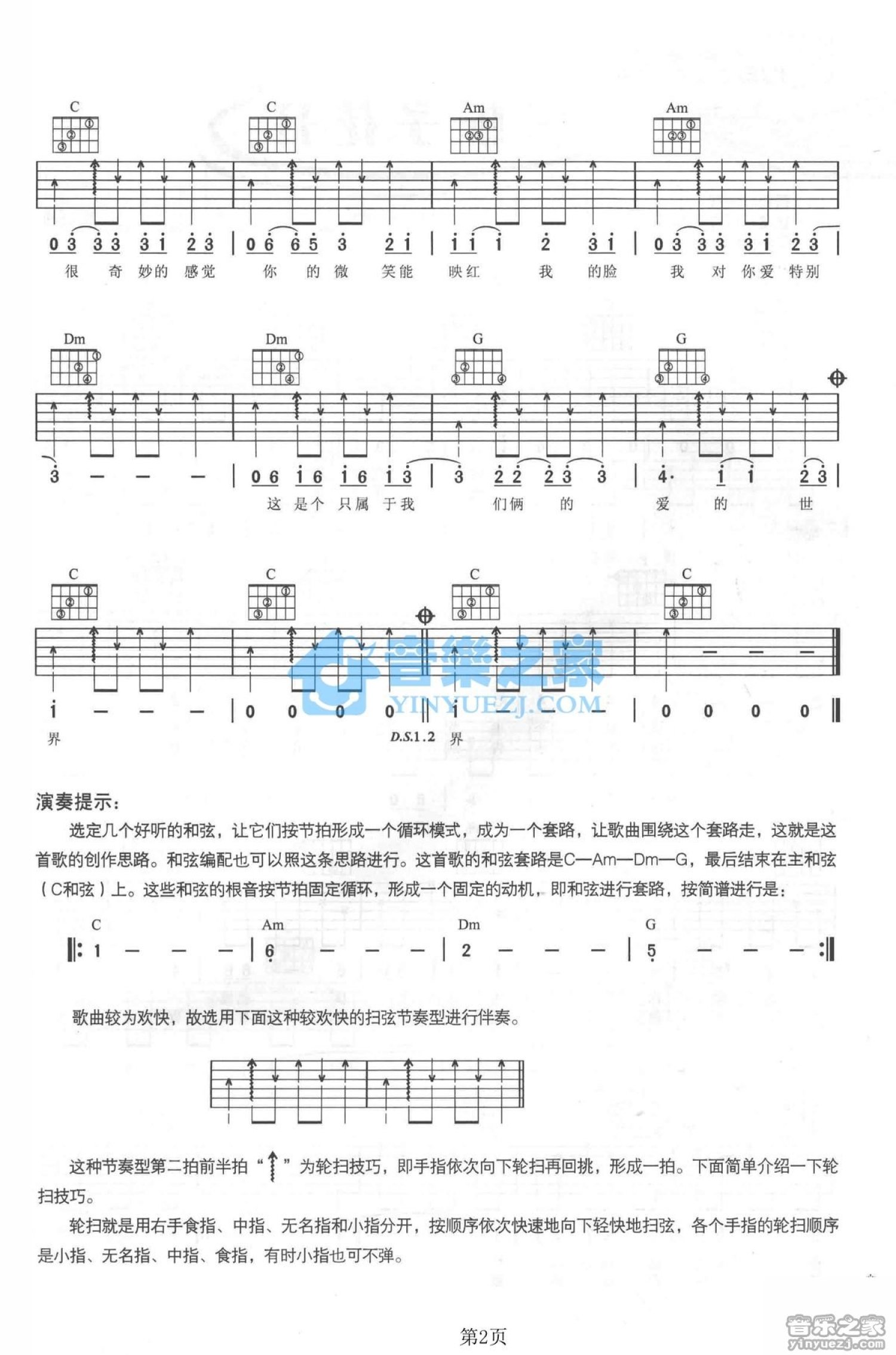 曲谱介绍: C调版彭坦/春晓《我们的小世界》吉他弹唱六线谱