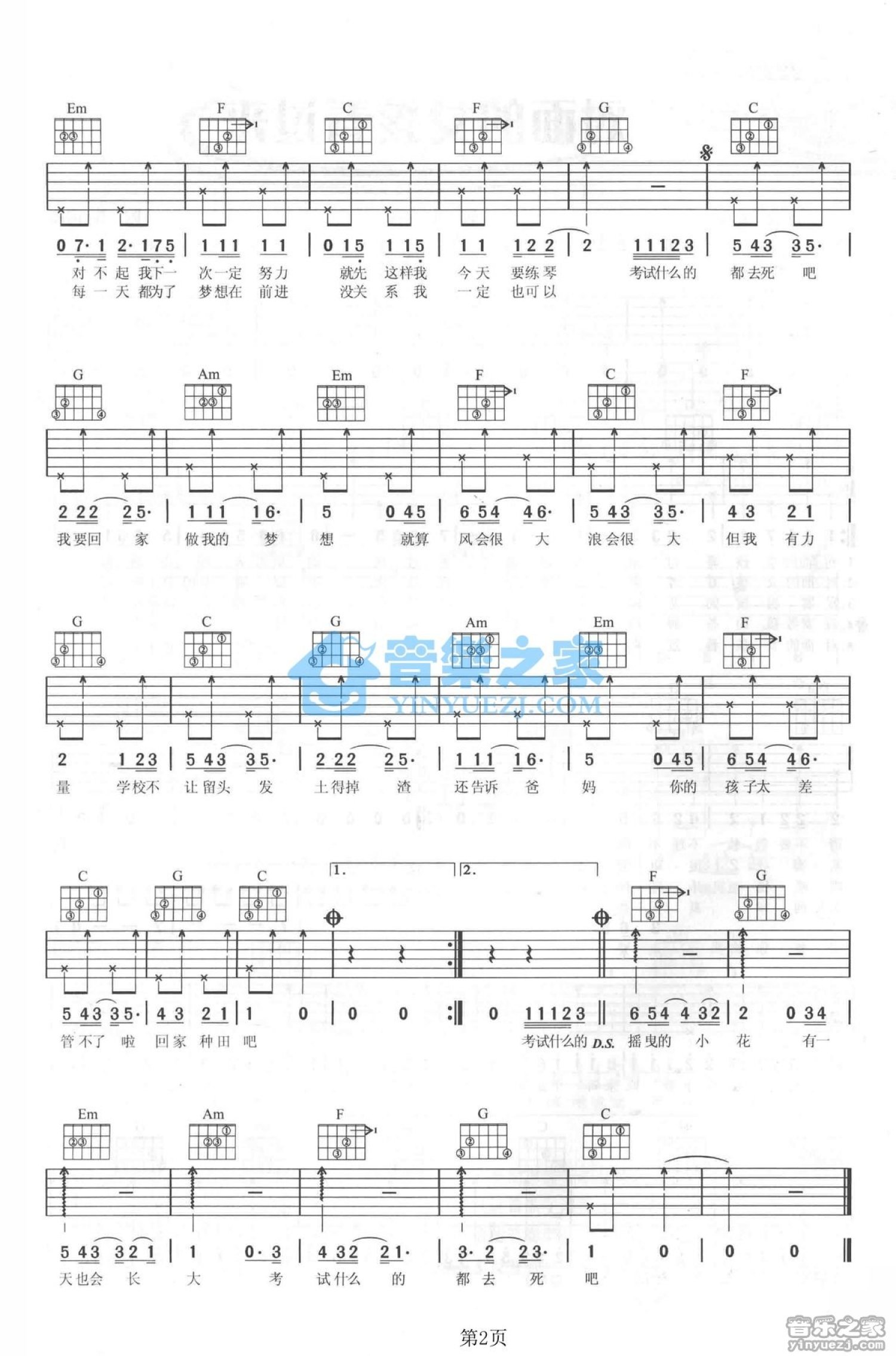 当前位置:琴谱网>吉他弹唱>考试什么的都去死吧
