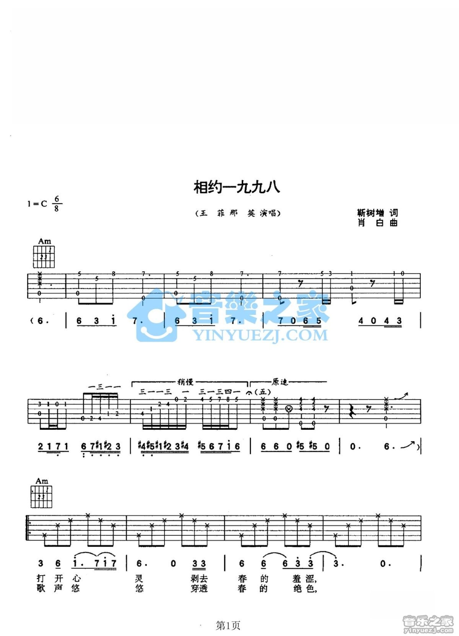 当前位置:琴谱网>吉他弹唱>相约一九九八
