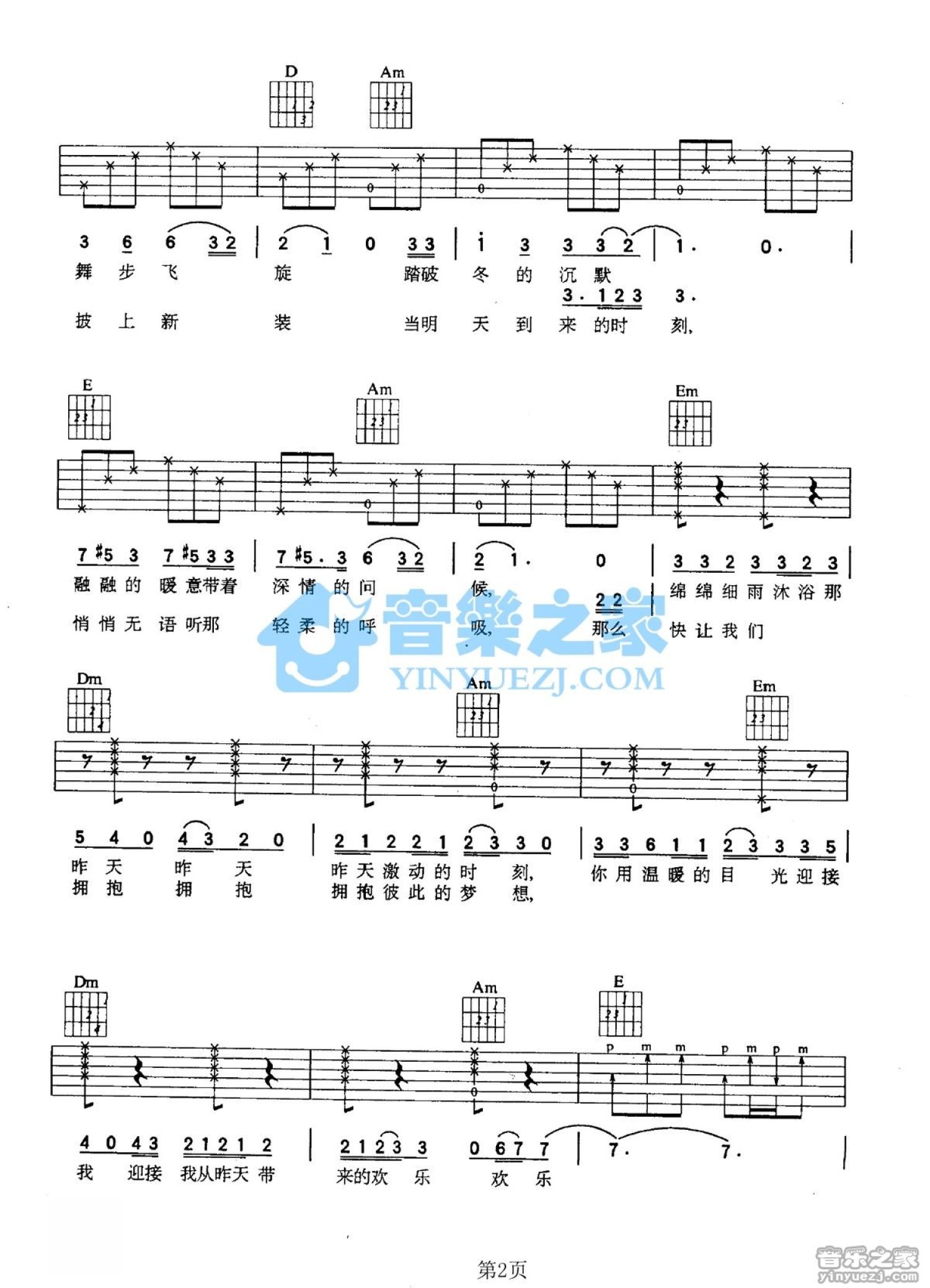 曲谱介绍: C调版王菲/那英《相约一九九八》吉他弹唱六线谱