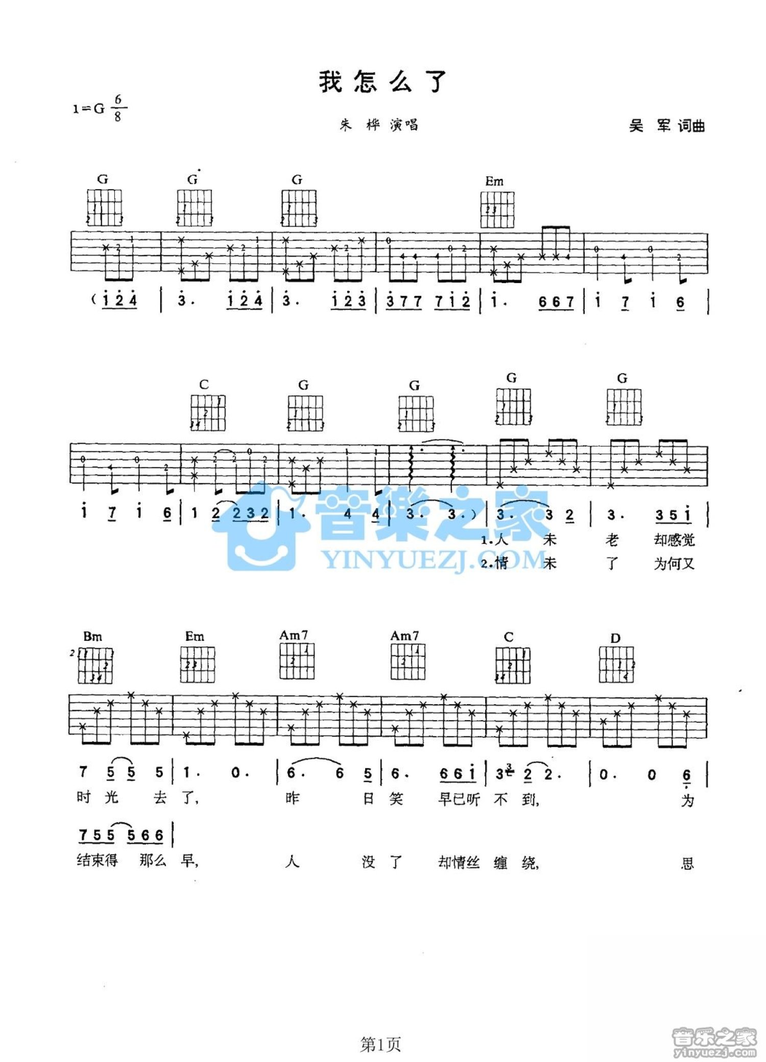 曲谱介绍: G调版朱桦《我怎么了》吉他弹唱六线谱