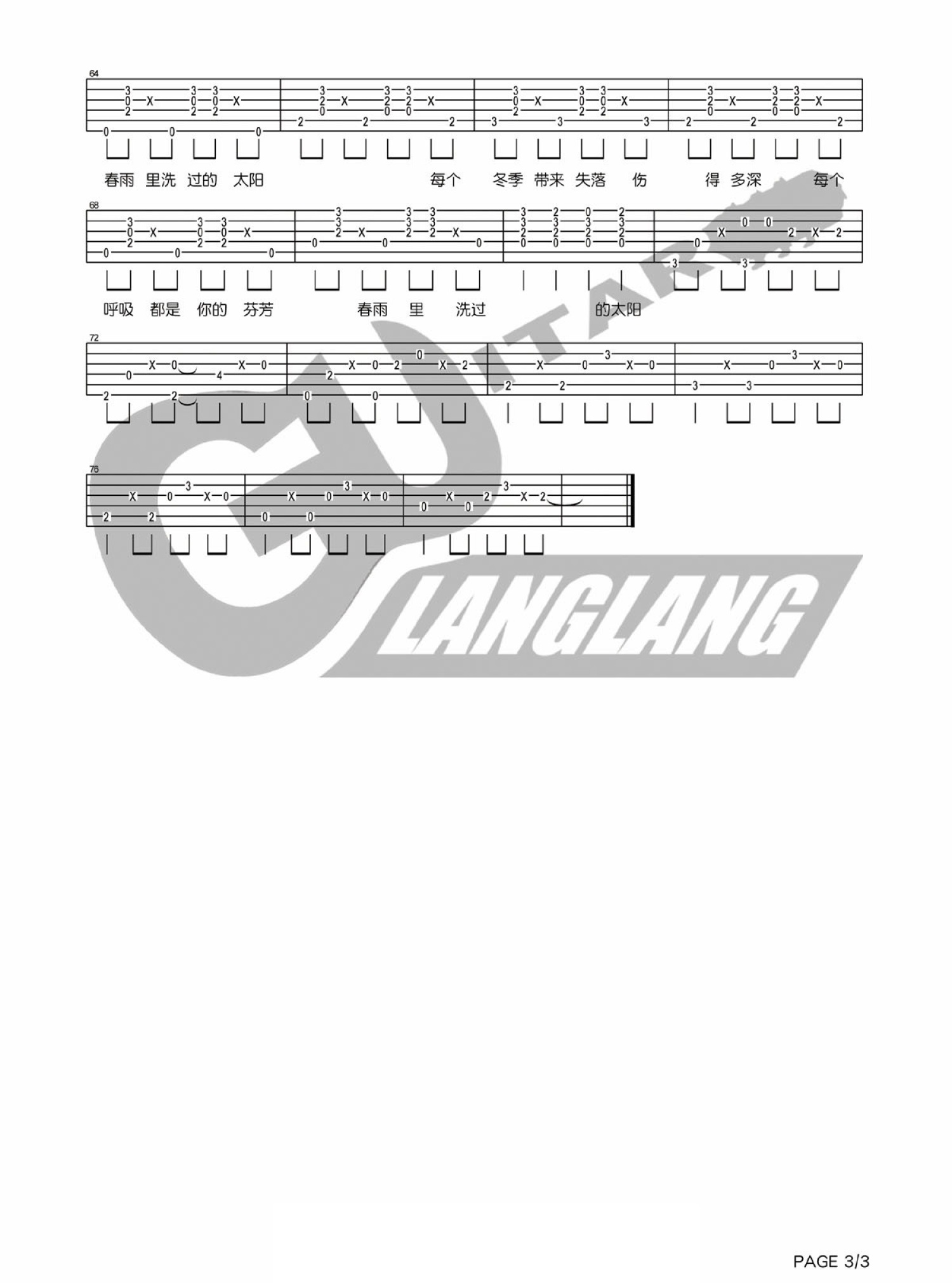 当前位置:琴谱网>吉他弹唱>春雨里洗过的太阳