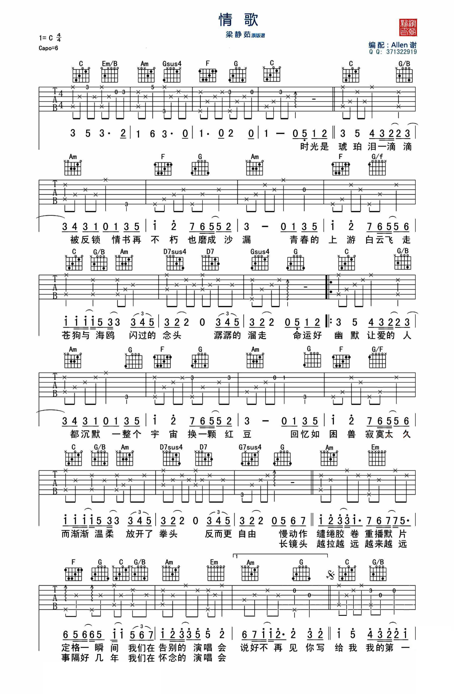 当前位置:琴谱网>吉他弹唱>情歌