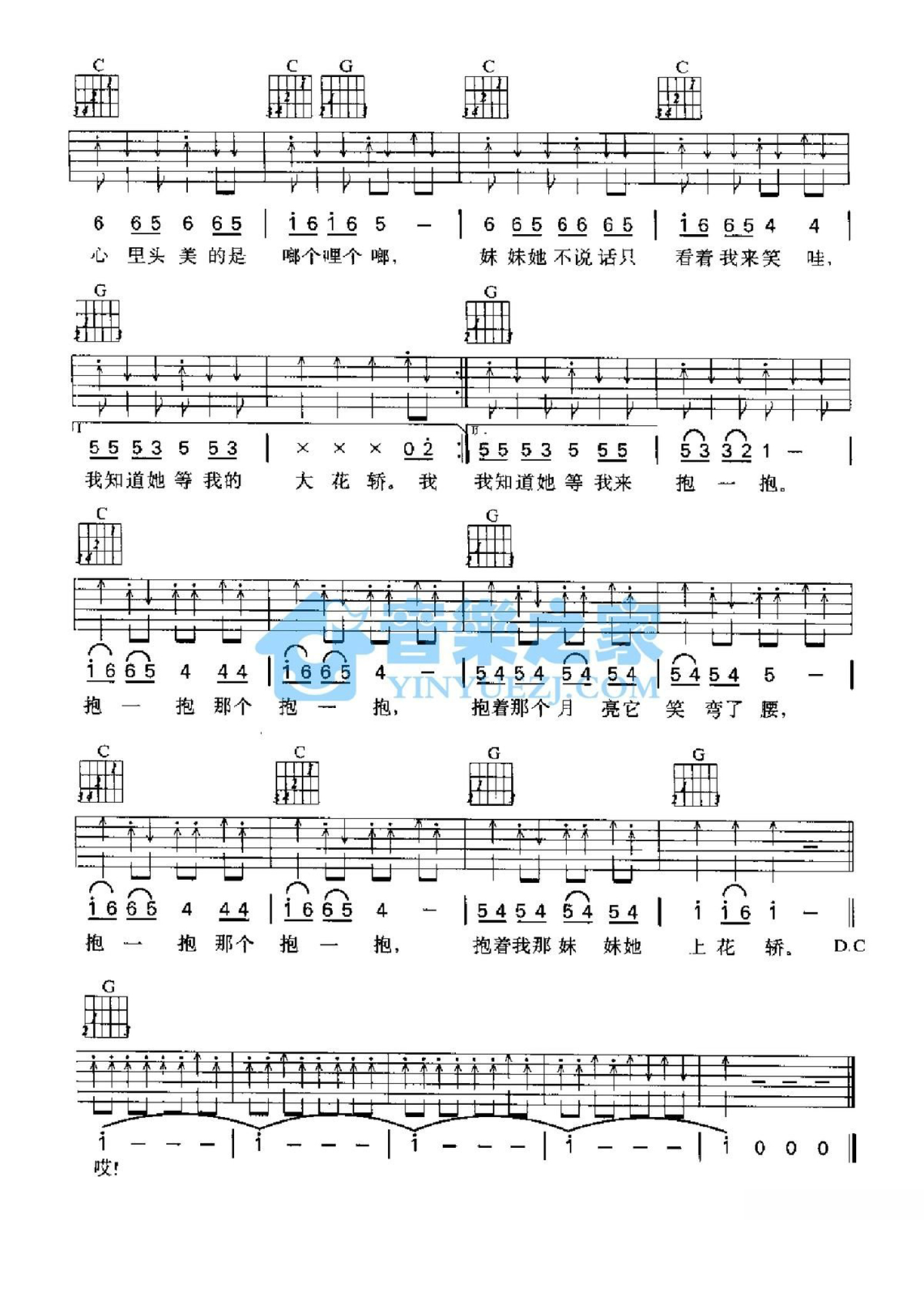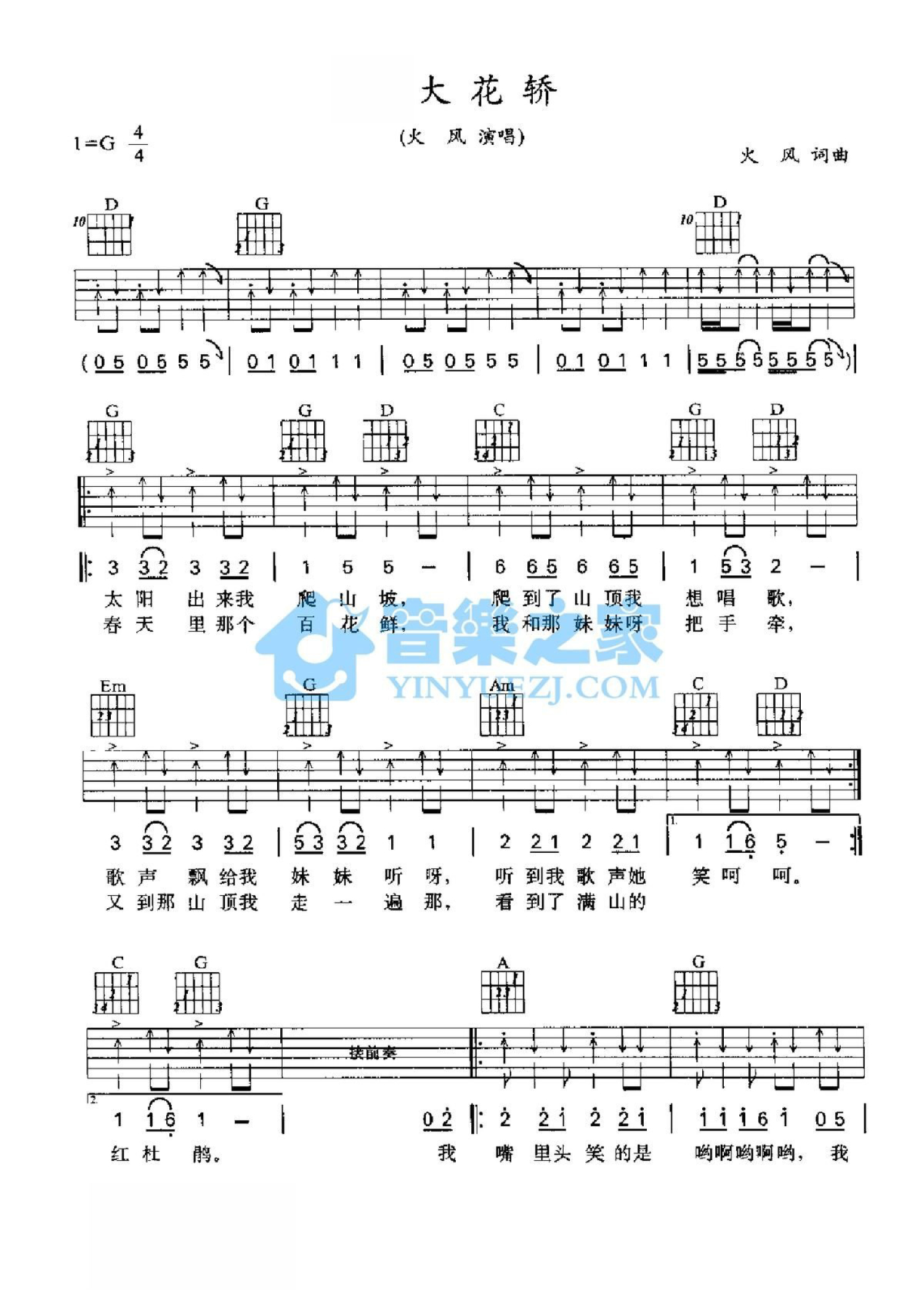 曲谱介绍: G调版火风《大花轿》吉他弹唱六线谱