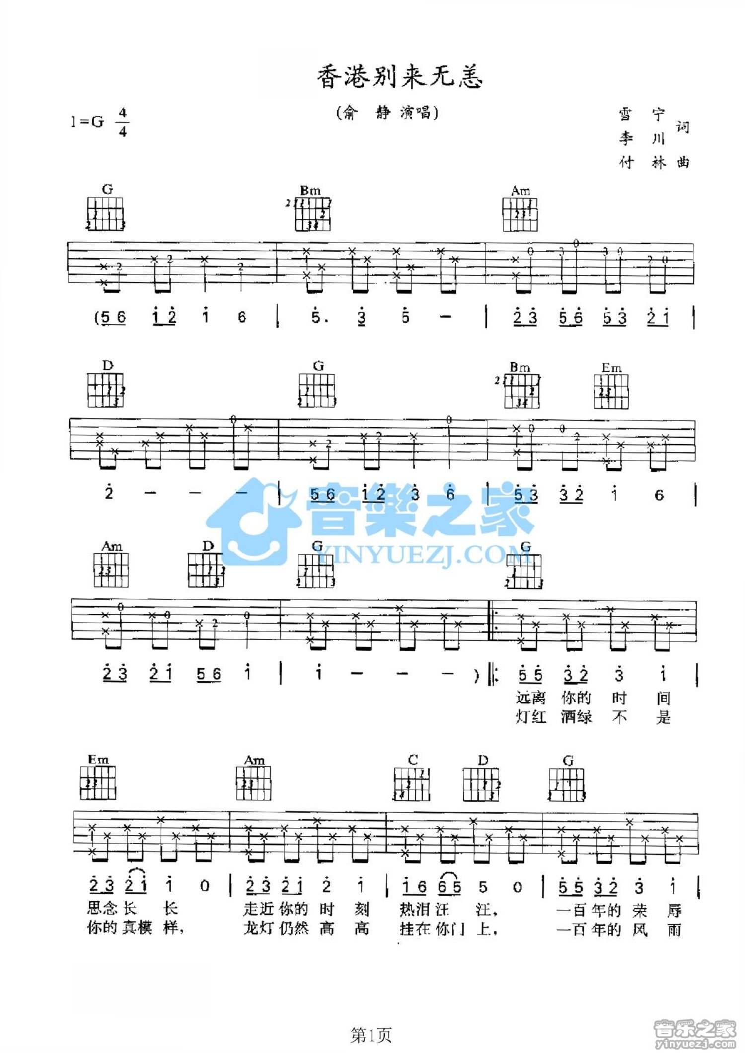 当前位置:琴谱网>吉他弹唱>香港别来无恙