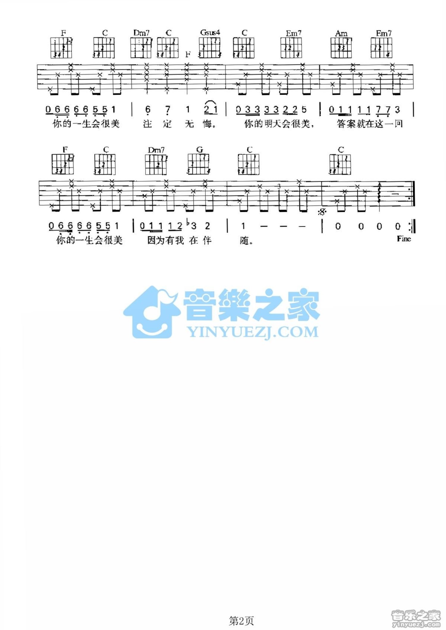 当前位置:琴谱网>吉他弹唱>你的明天会很美