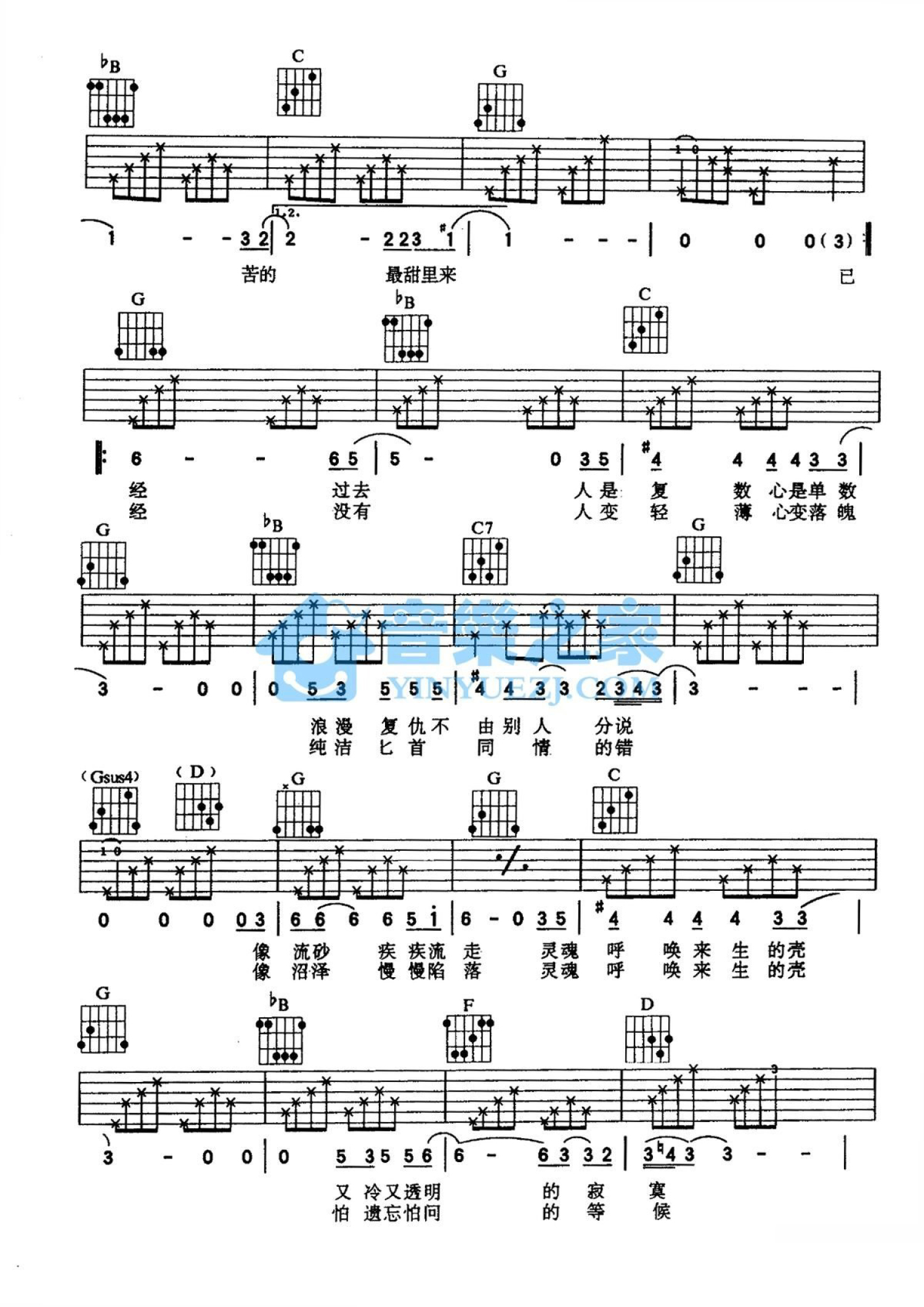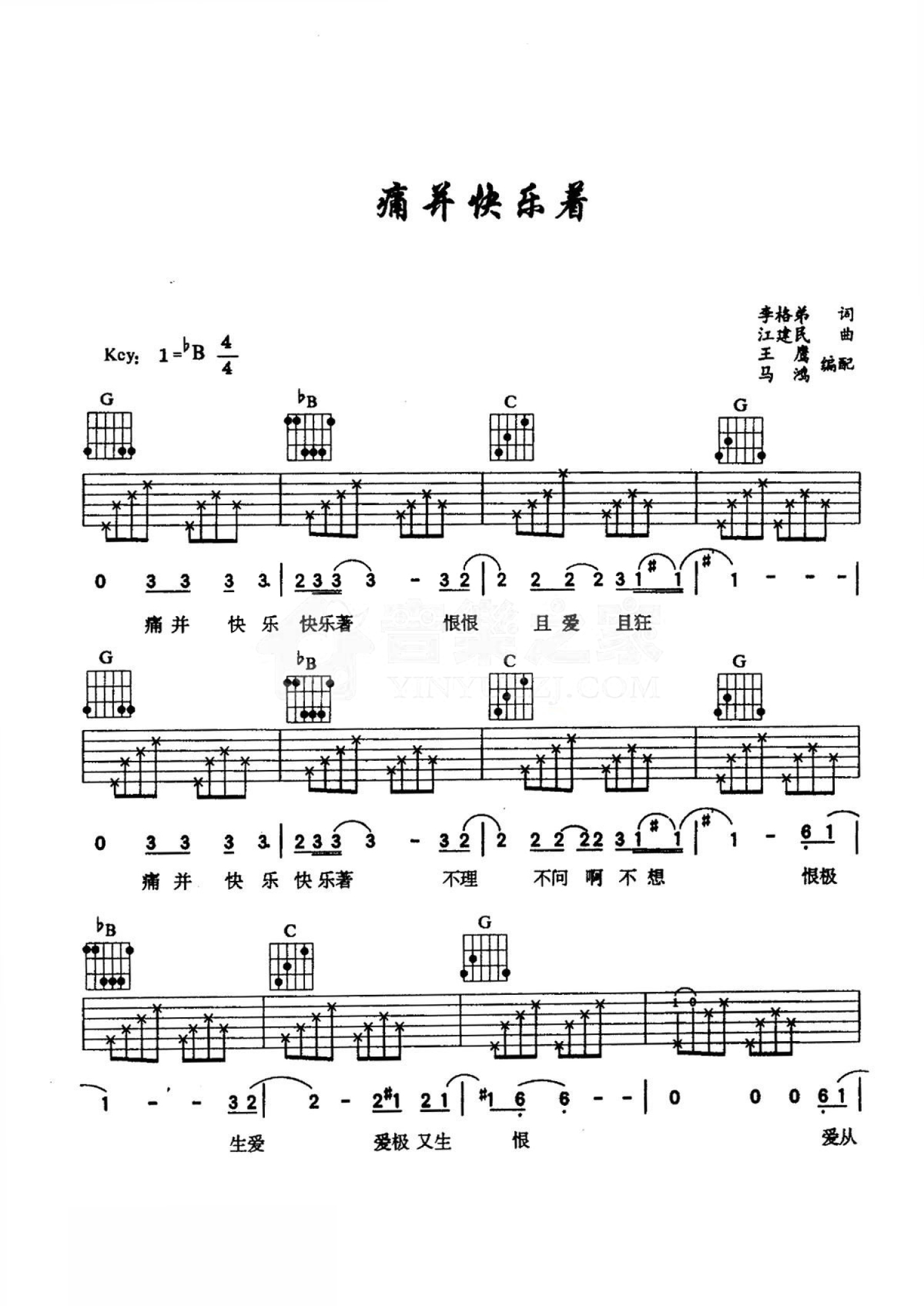 曲谱介绍: bB调版齐秦《痛并快乐着》吉他弹唱六线谱