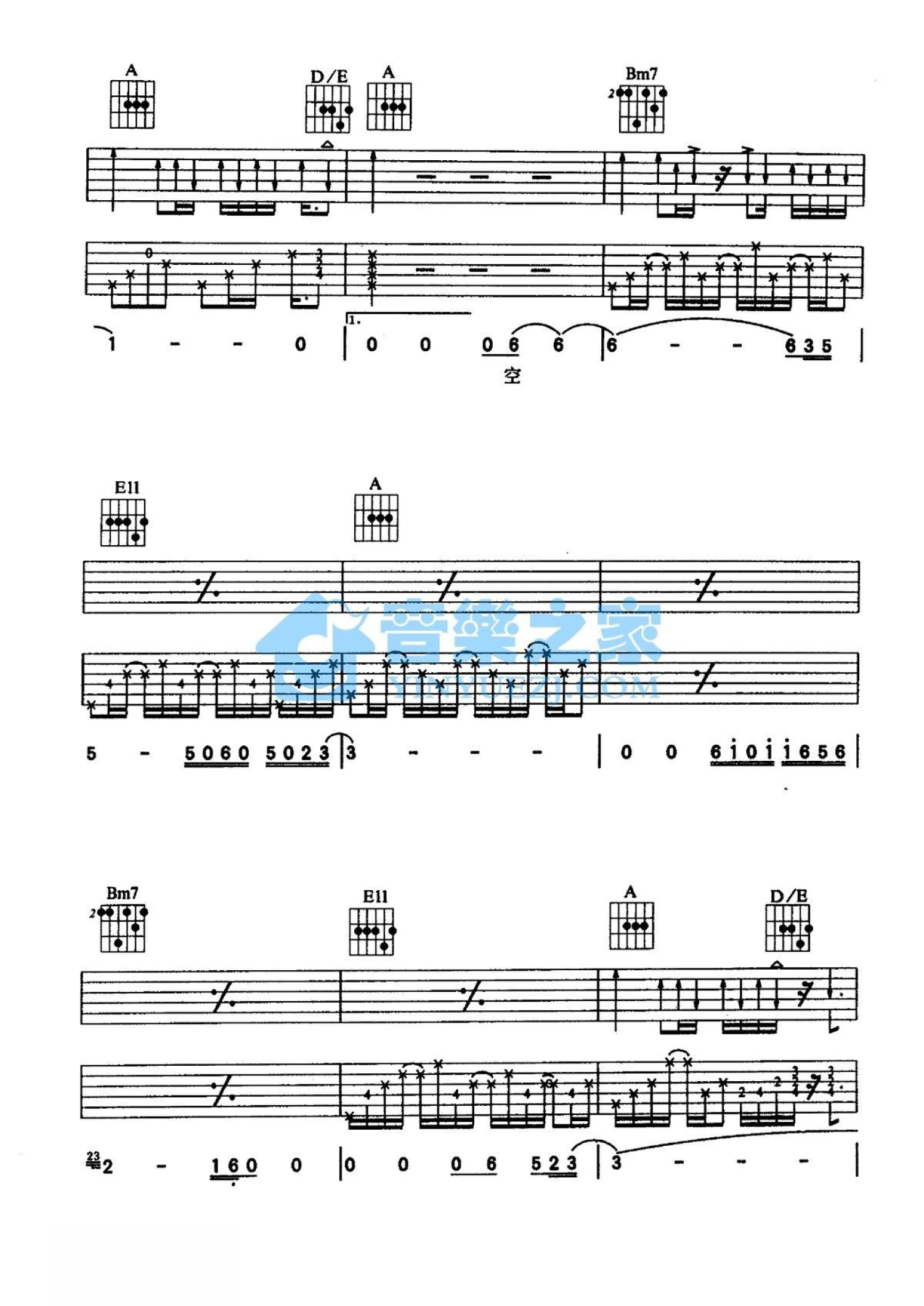 当前位置:琴谱网>吉他弹唱>空白
