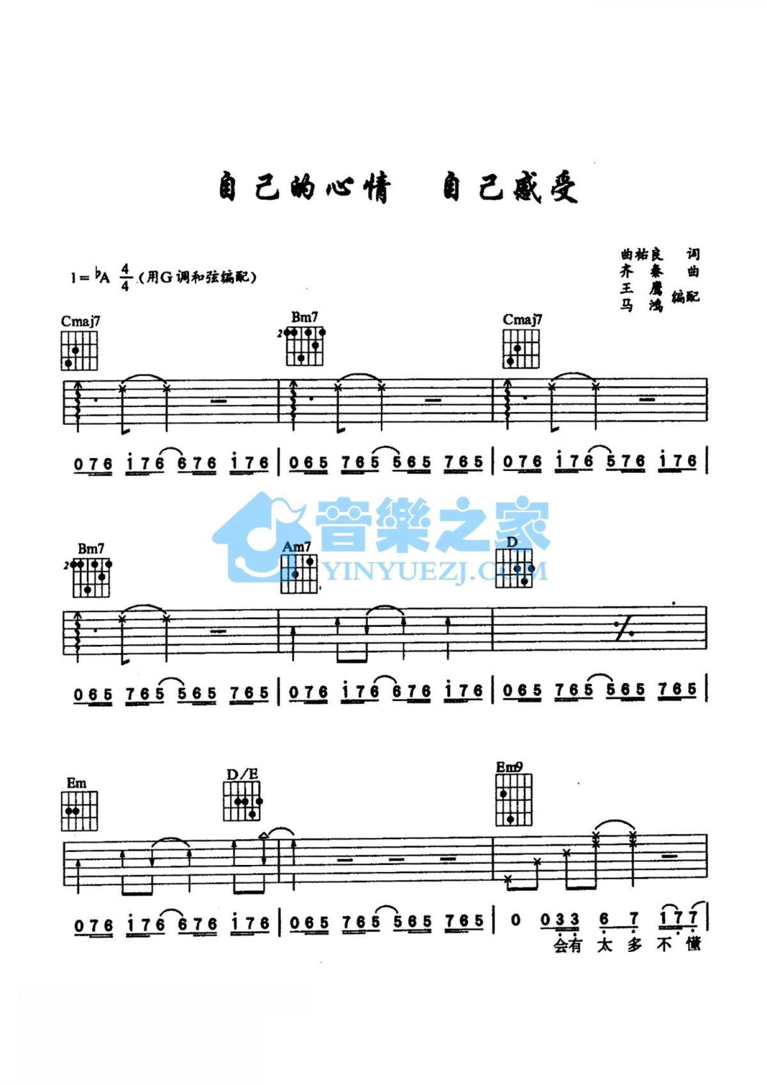 当前位置:琴谱网>吉他弹唱>自己的心情自己感受