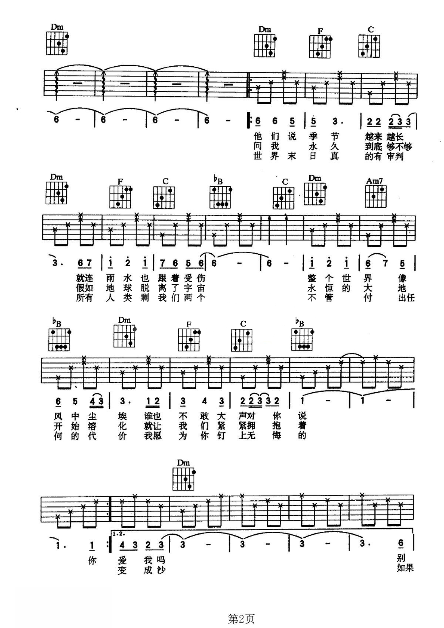 当前位置:琴谱网>吉他弹唱>直到世界末日