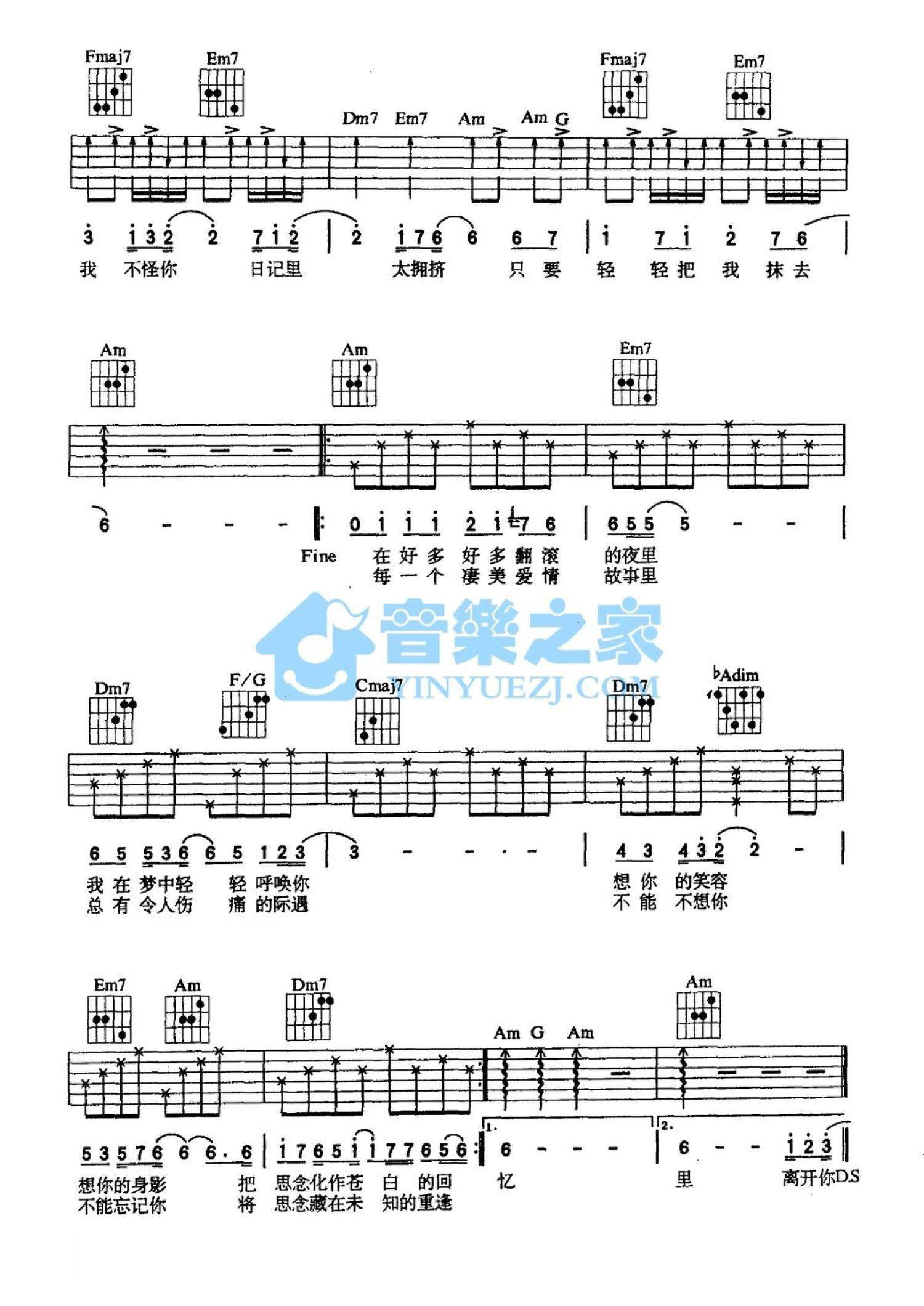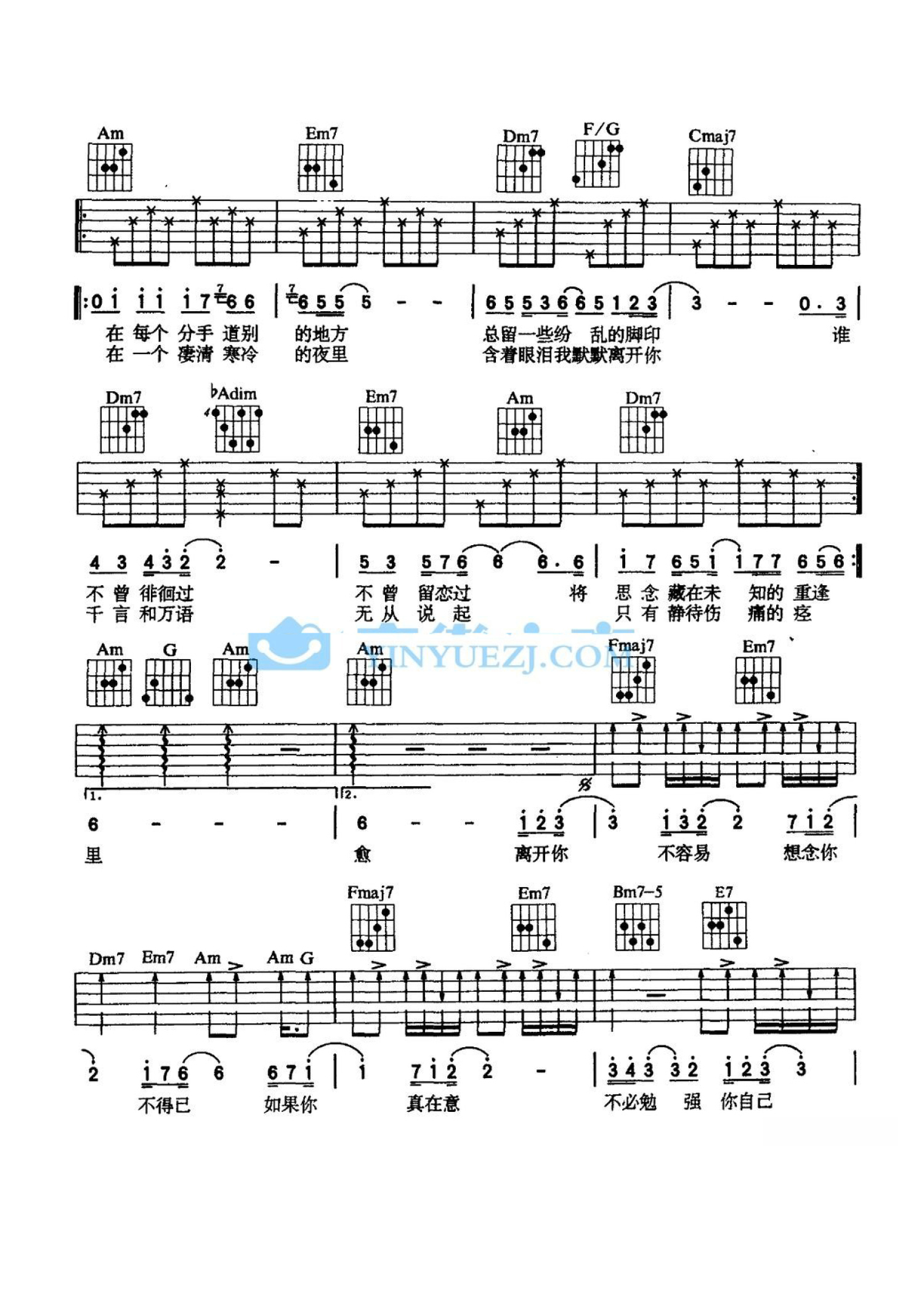 曲谱介绍: C调版齐秦《不必勉强》吉他弹唱六线谱