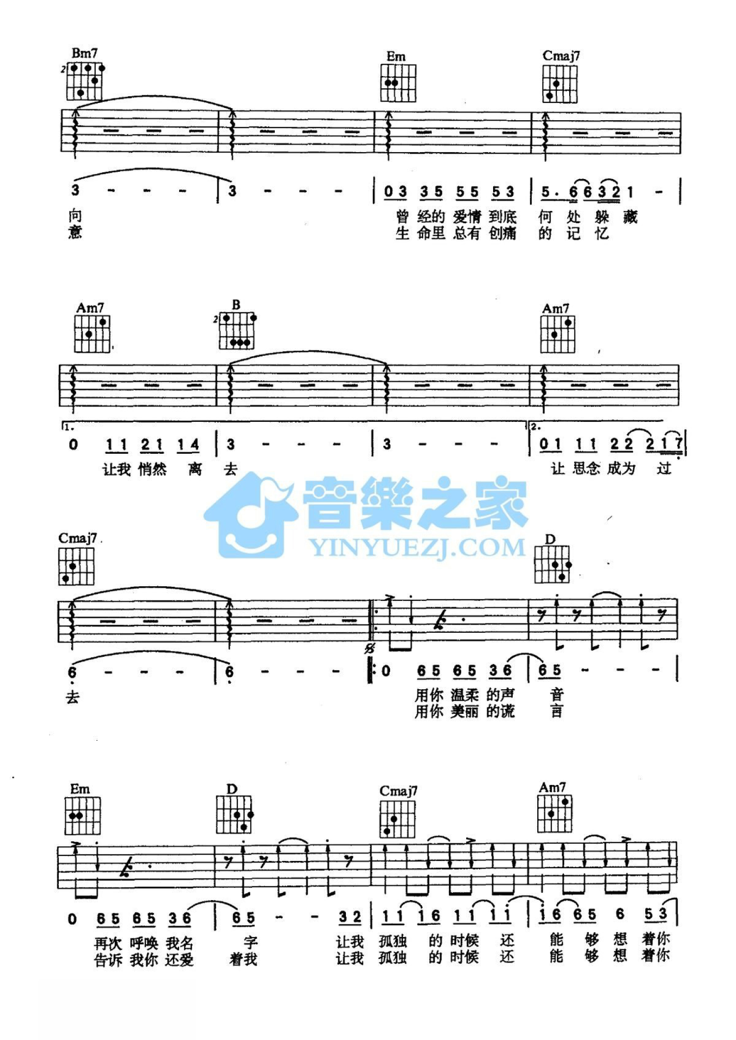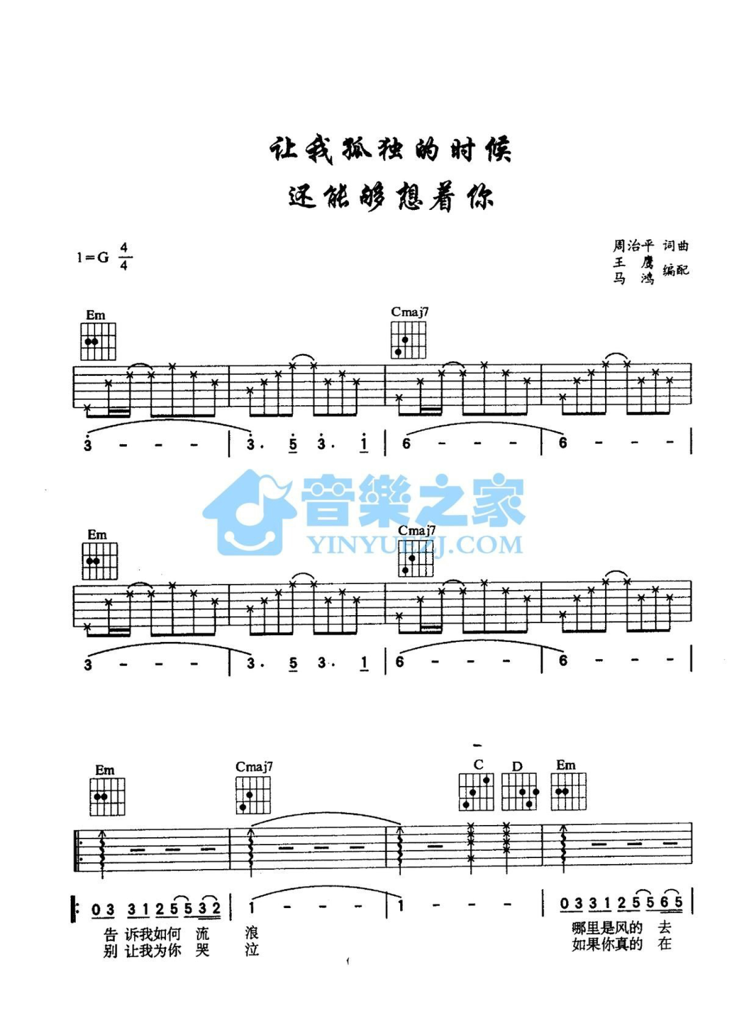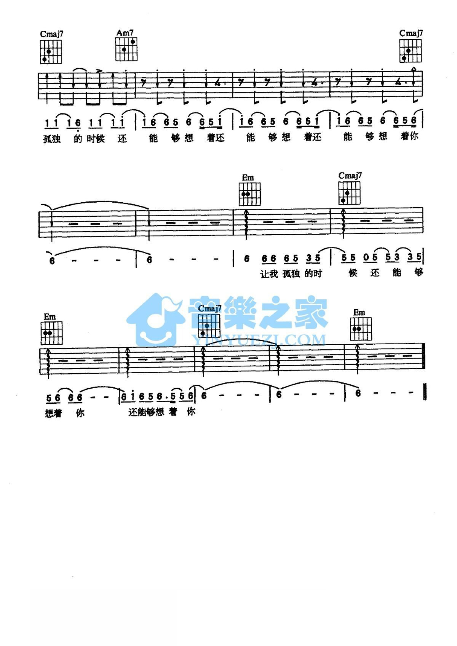 当前位置:琴谱网>吉他弹唱>让我孤独的时候还能够想着你