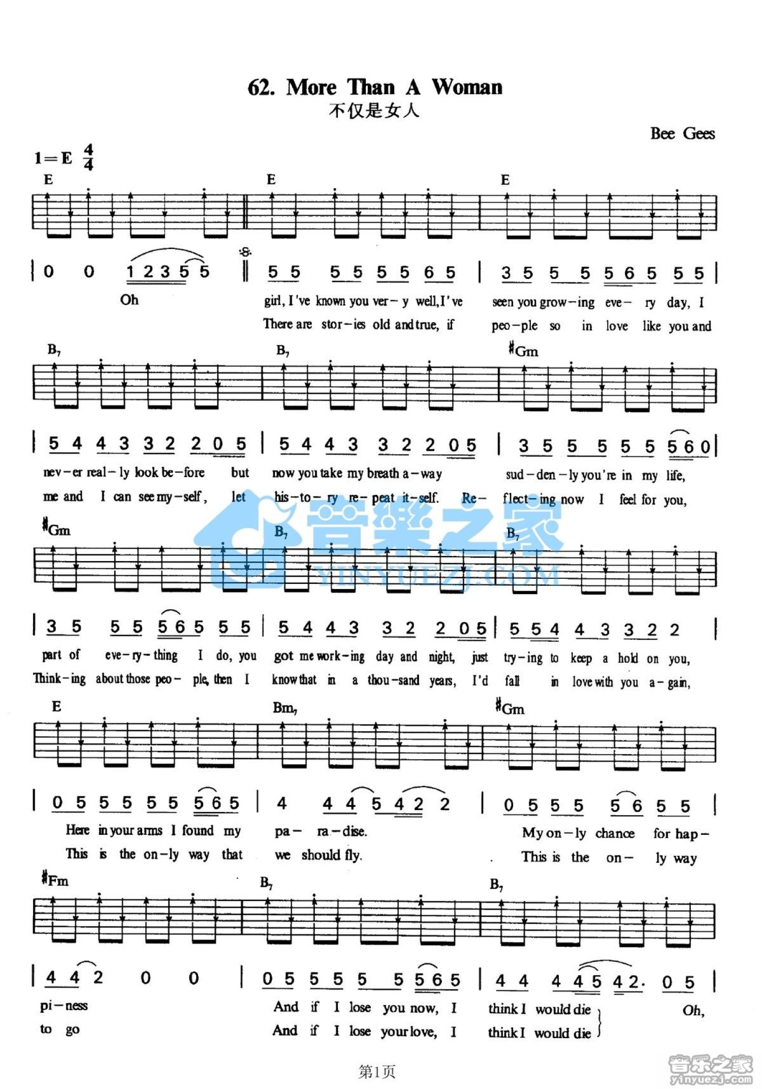 More Than a Woman吉他谱 - Bee Gees - E调吉他弹唱谱