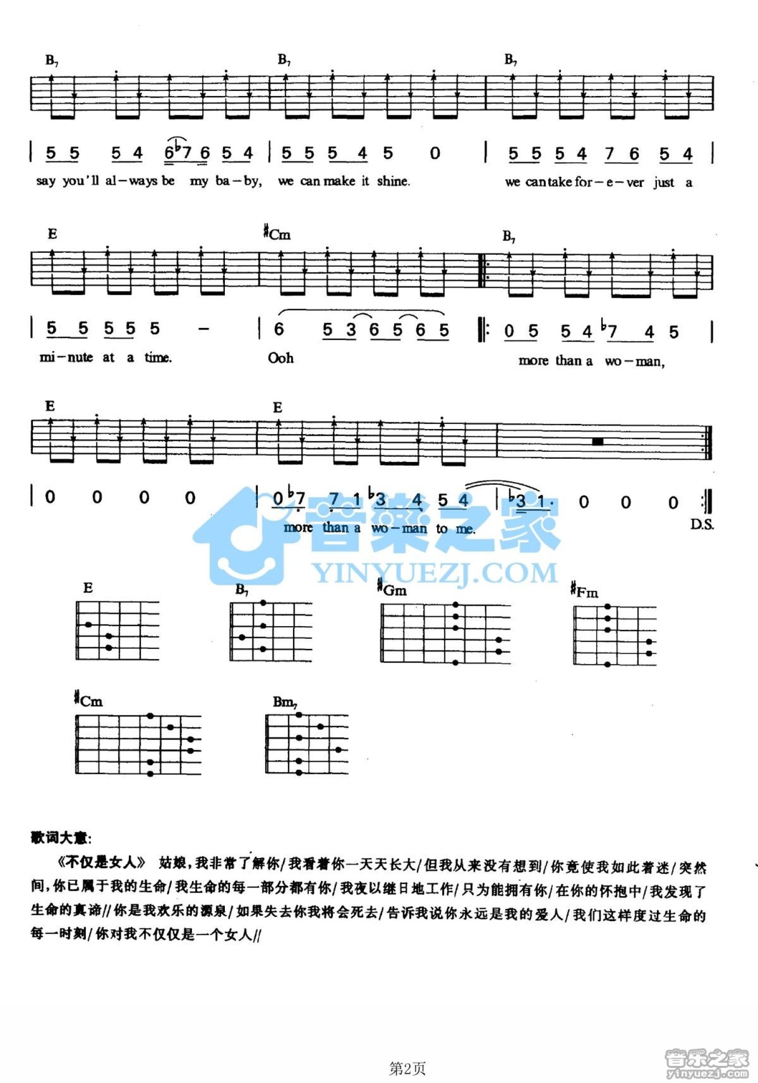 曲谱介绍: E调版BeeGees《MoreThanaWoman》吉他弹唱六线谱