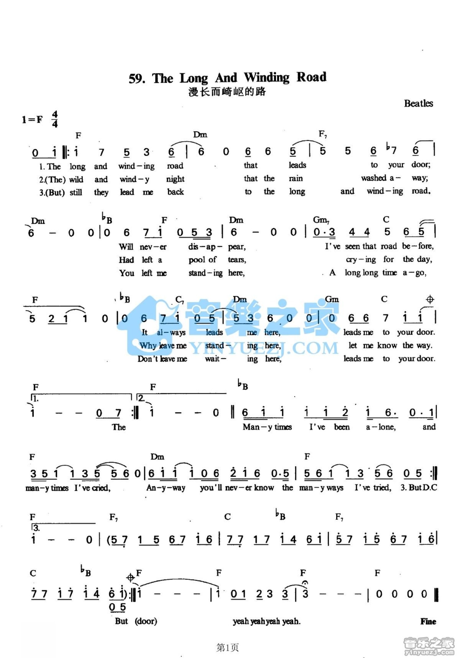 The Long and Winding Road吉他谱 - Beatles - F调吉他弹唱谱