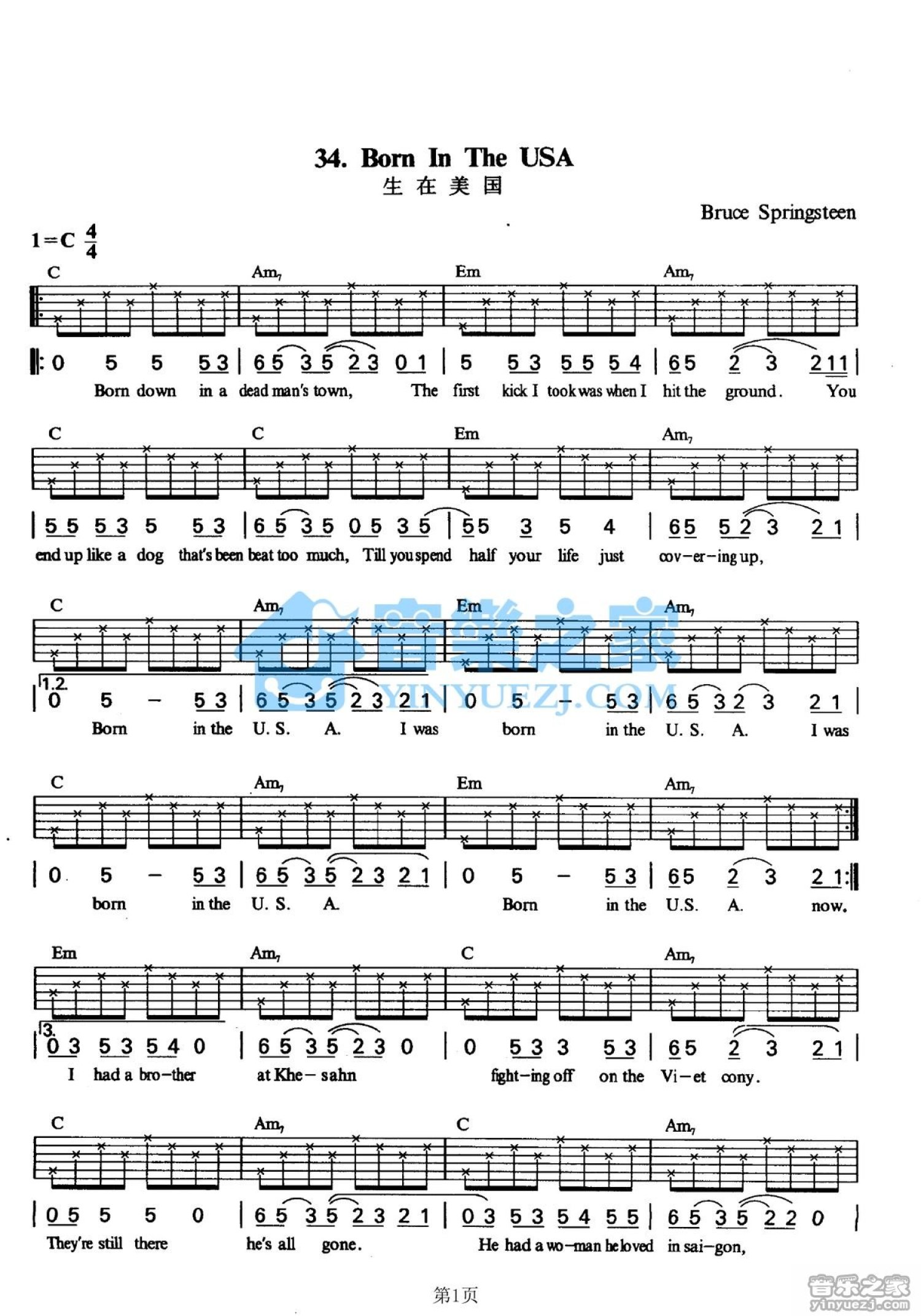 Born in the USA吉他谱 - C调吉他弹唱谱