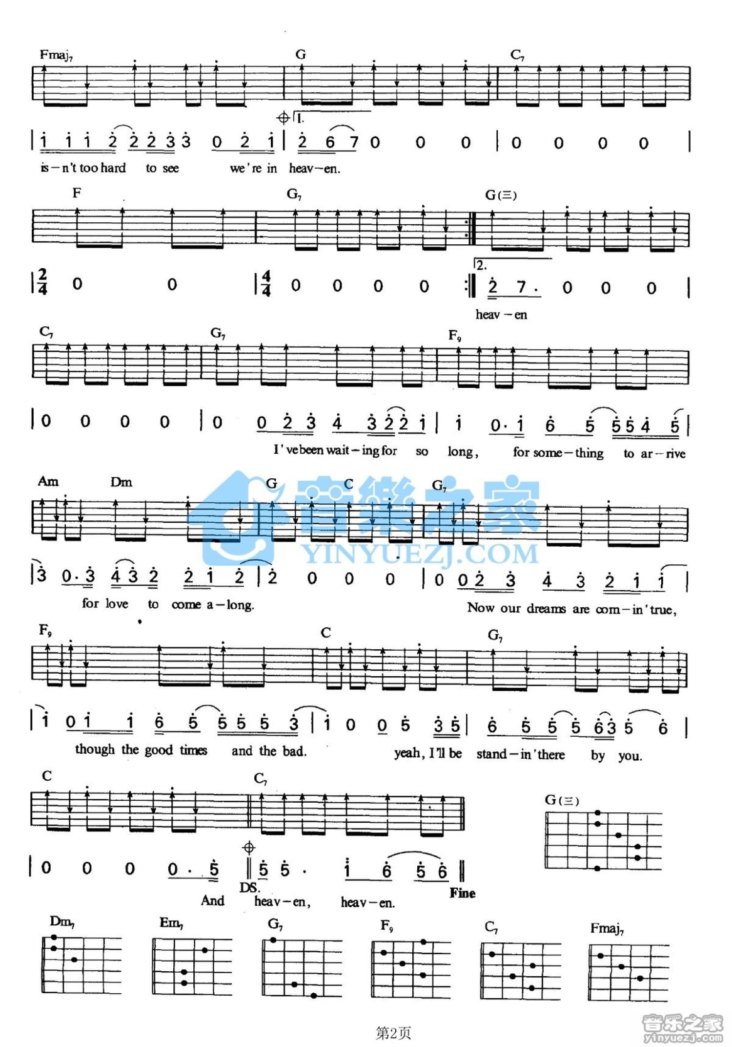 曲谱介绍: C调版BryanAdams《Heaven》吉他弹唱六线谱