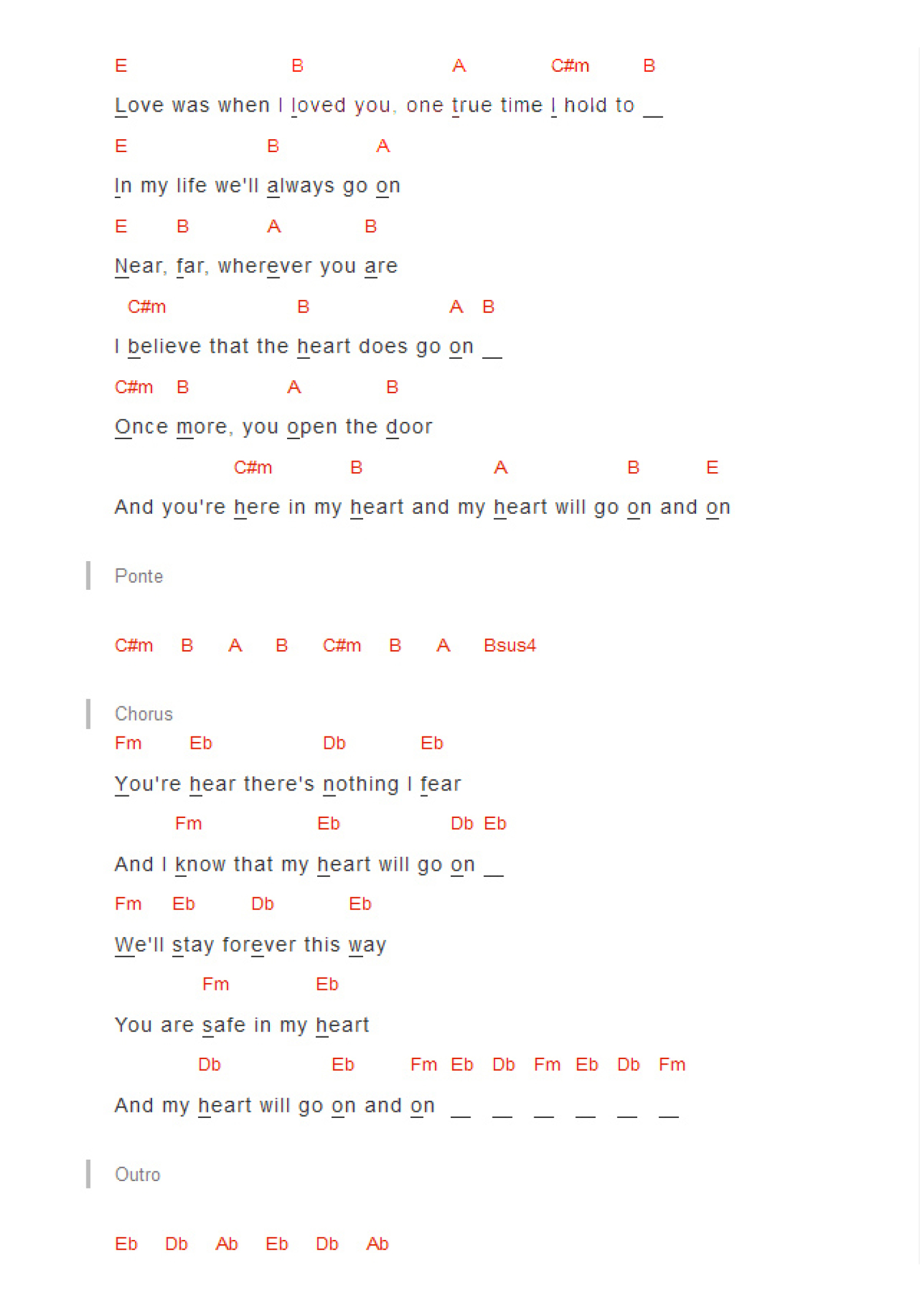 my heart will go on吉他谱 - 我心永恒 - E调吉他弹唱谱 - 和弦谱