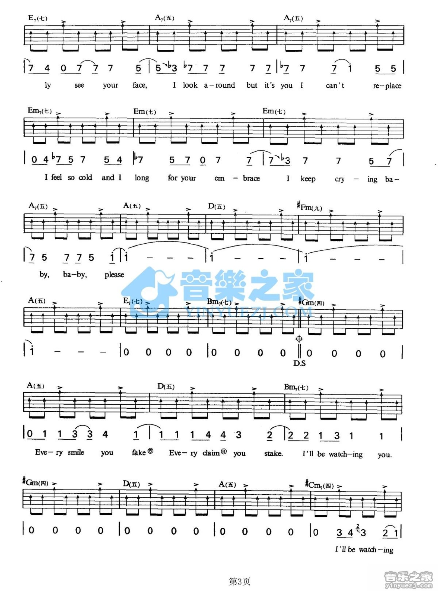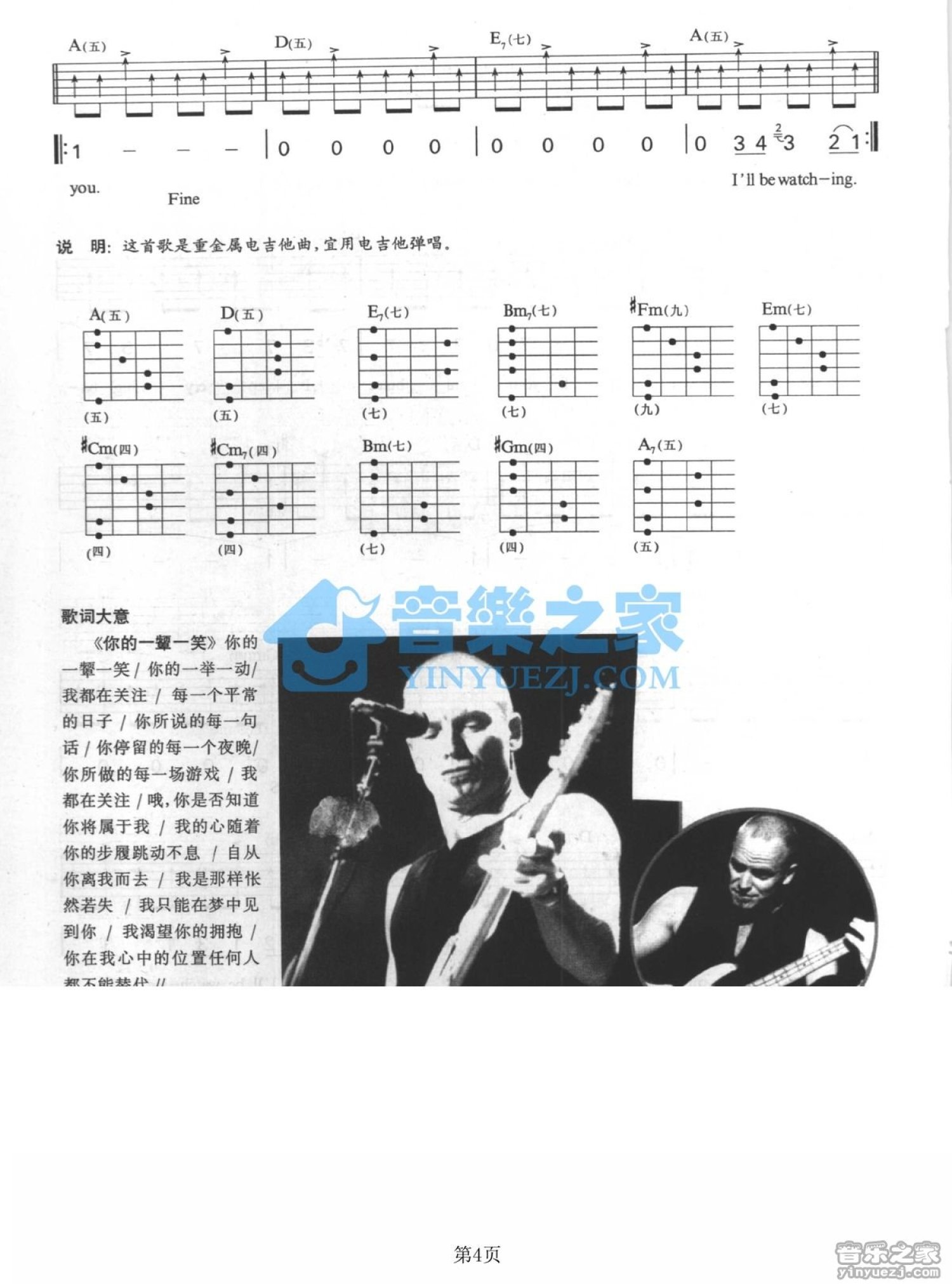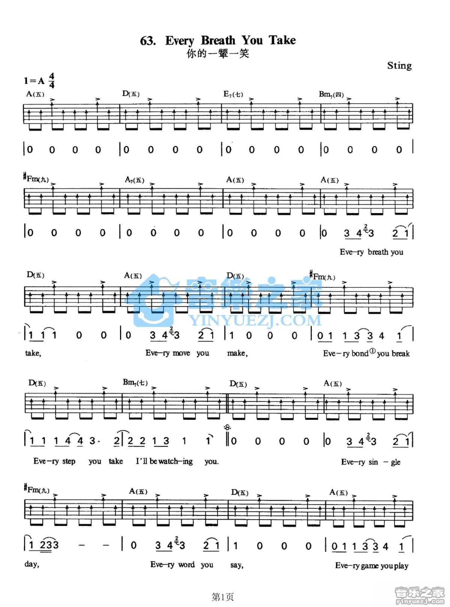 曲谱介绍: A调版Sting《veryBreathYouTake》吉他弹唱六线谱