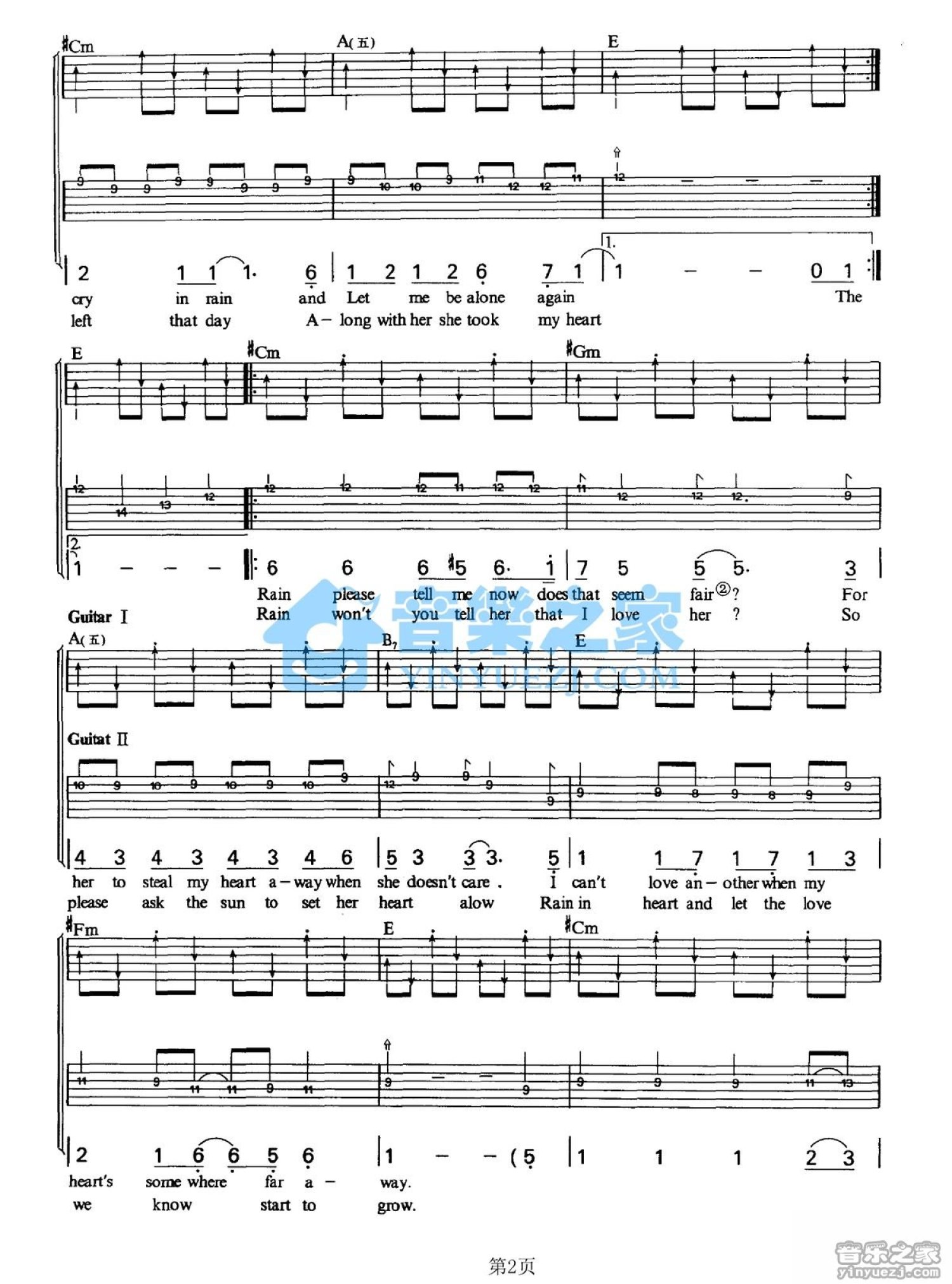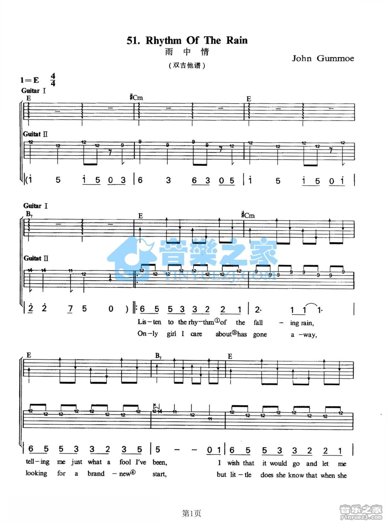 Rhythm of the Rain吉他谱 - 雨中情 - E调吉他弹唱谱