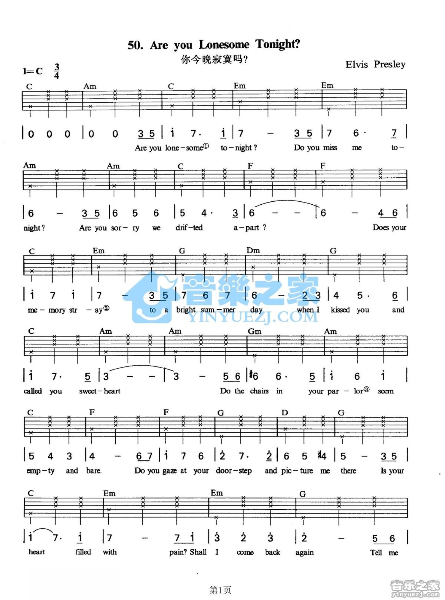 Are you lonesome tonight吉他谱 - 你今晚寂寞吗 - C调吉他弹唱谱