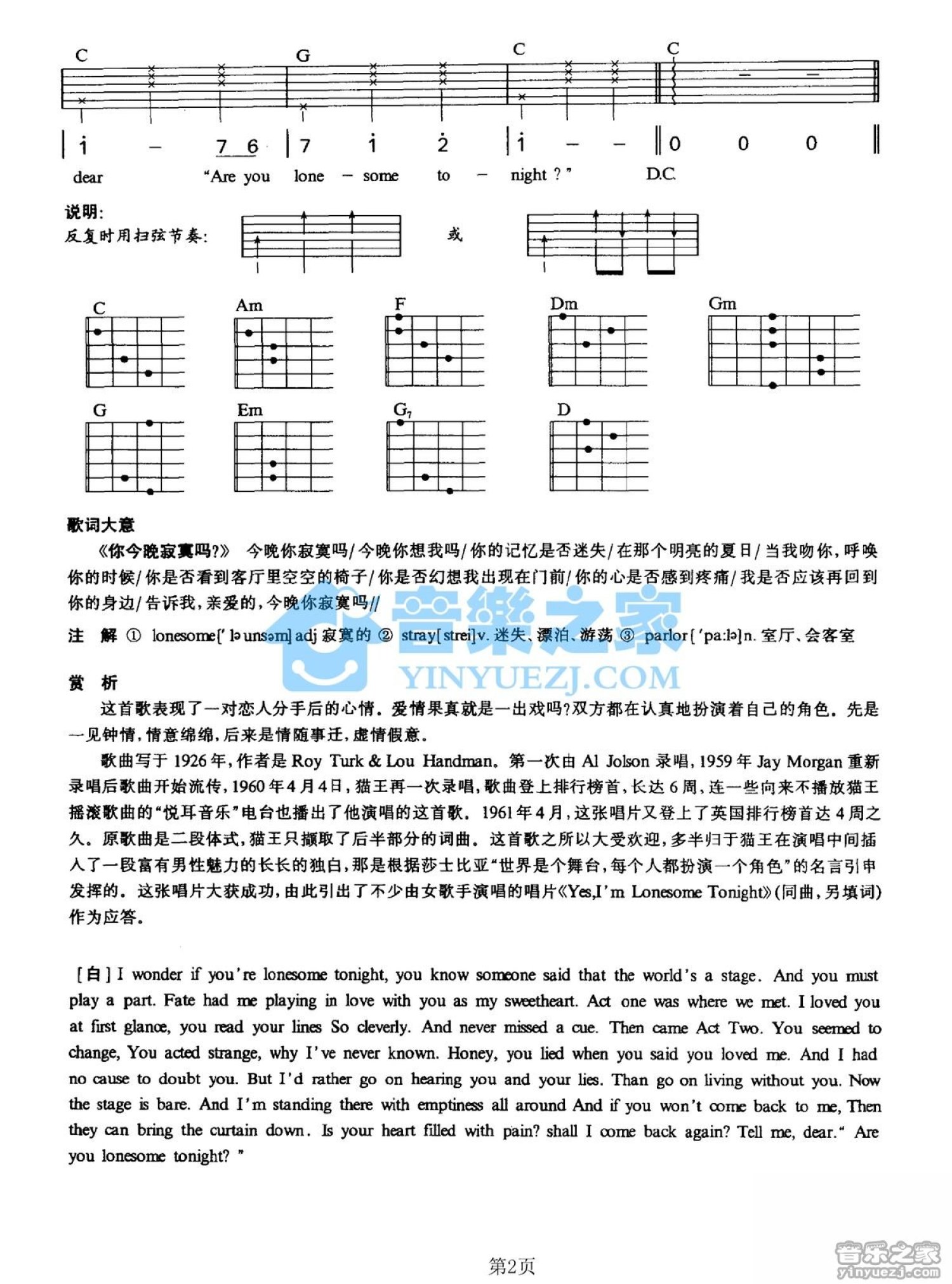 当前位置:琴谱网>吉他弹唱>Are you lonesome tonight
