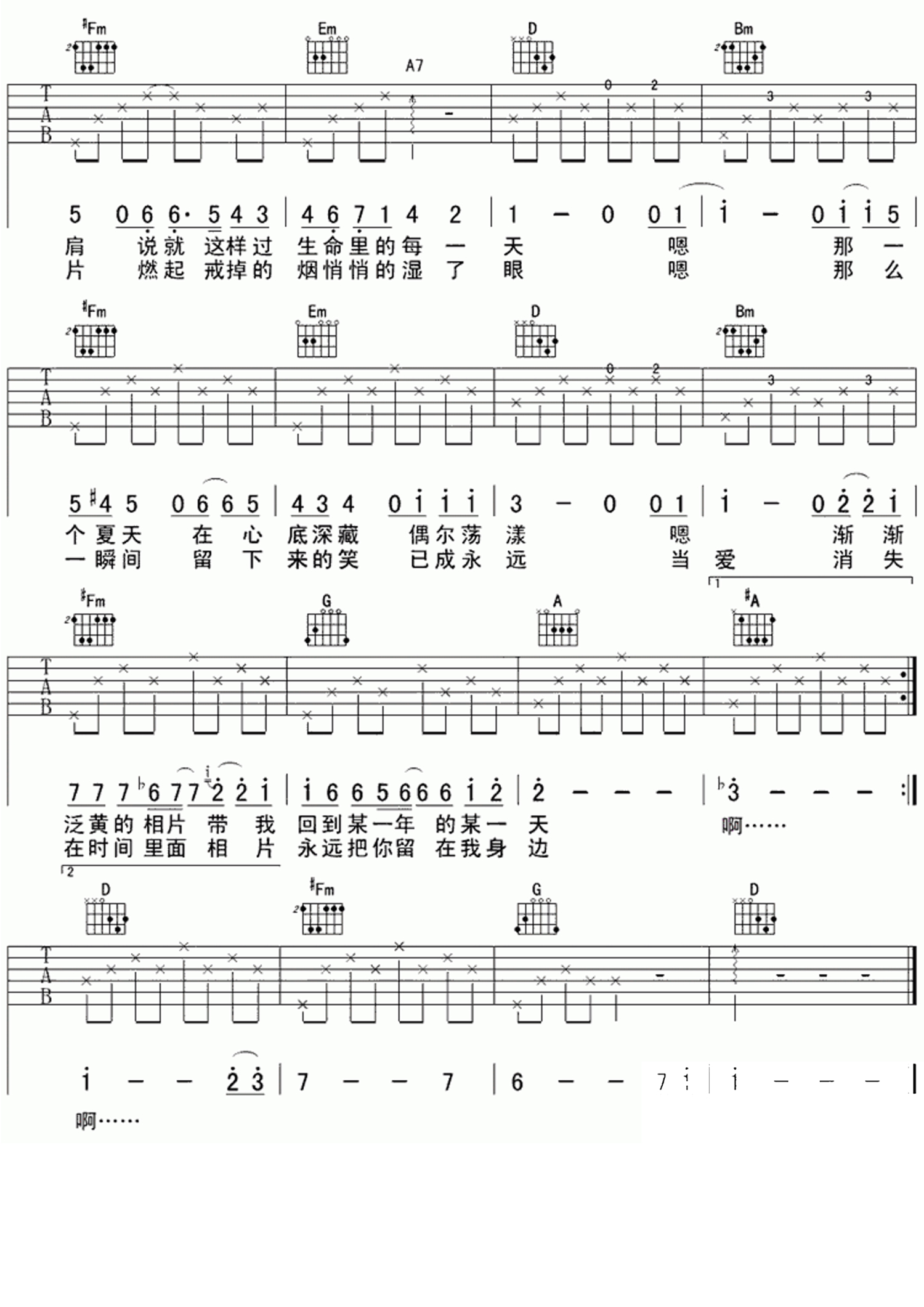 当前位置:琴谱网>吉他弹唱>八月照相馆