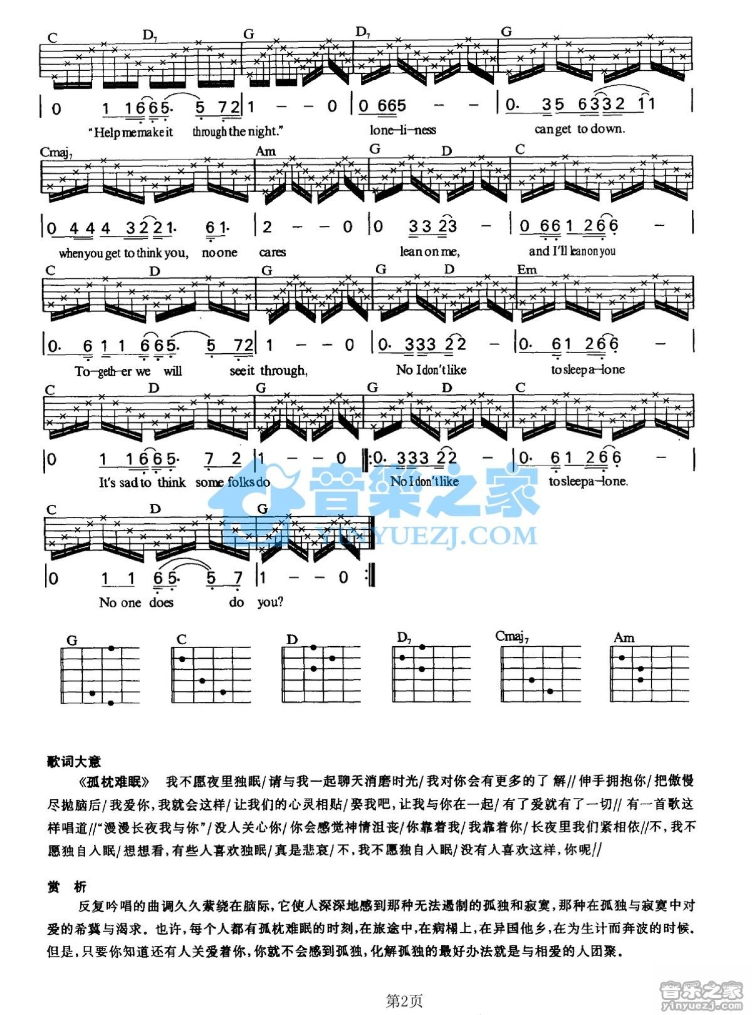 曲谱介绍: G调版《IDontLikeToSleepAlone》吉他弹唱六线谱