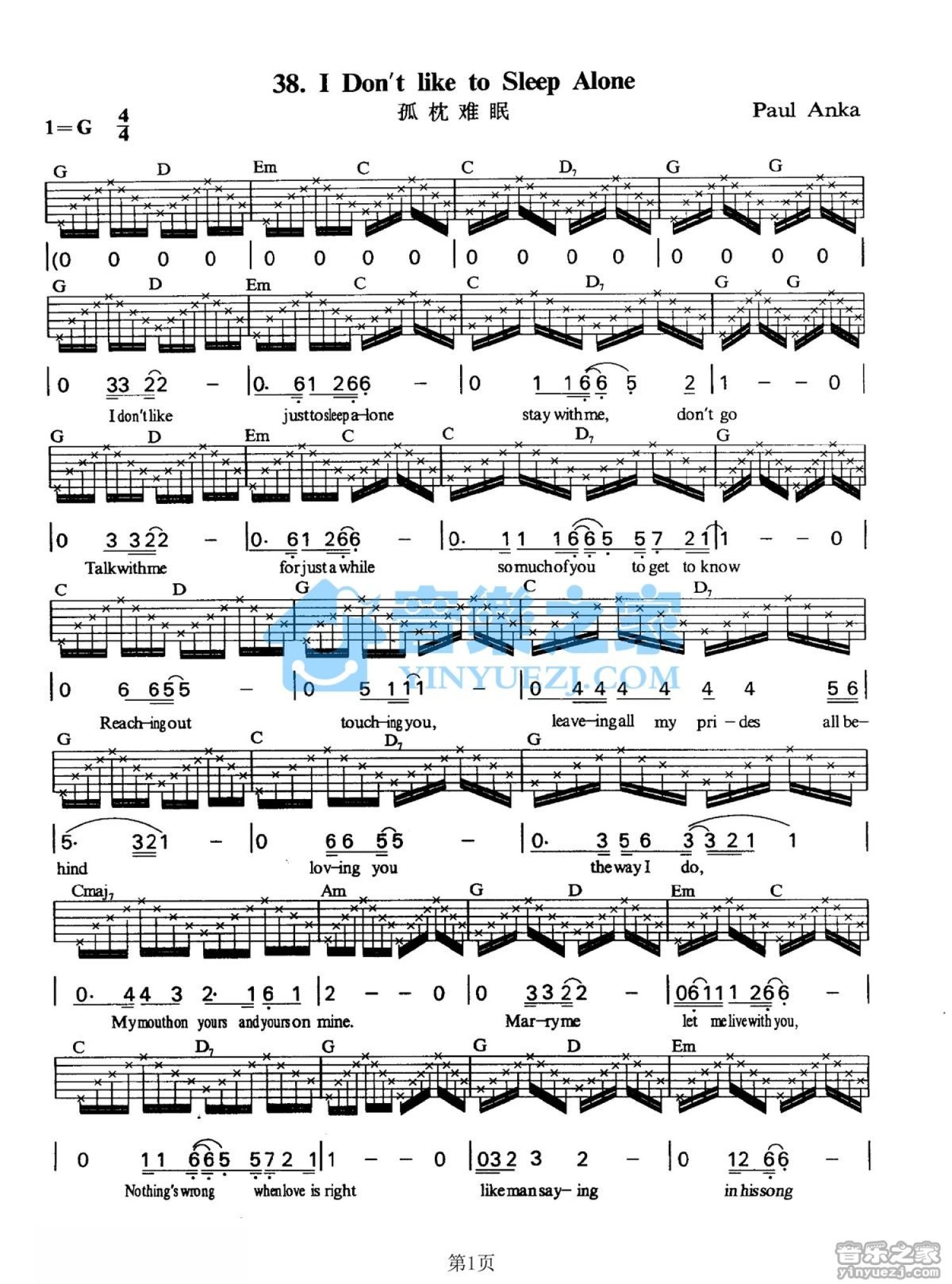 当前位置:琴谱网>吉他弹唱>I Dont Like To Sleep Alone
