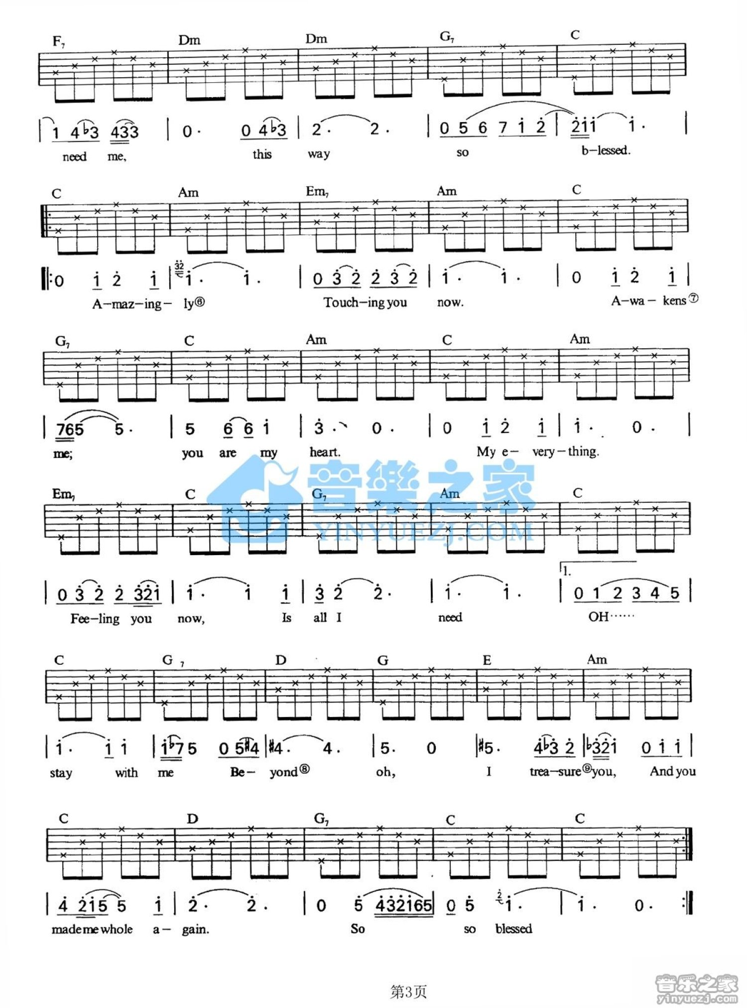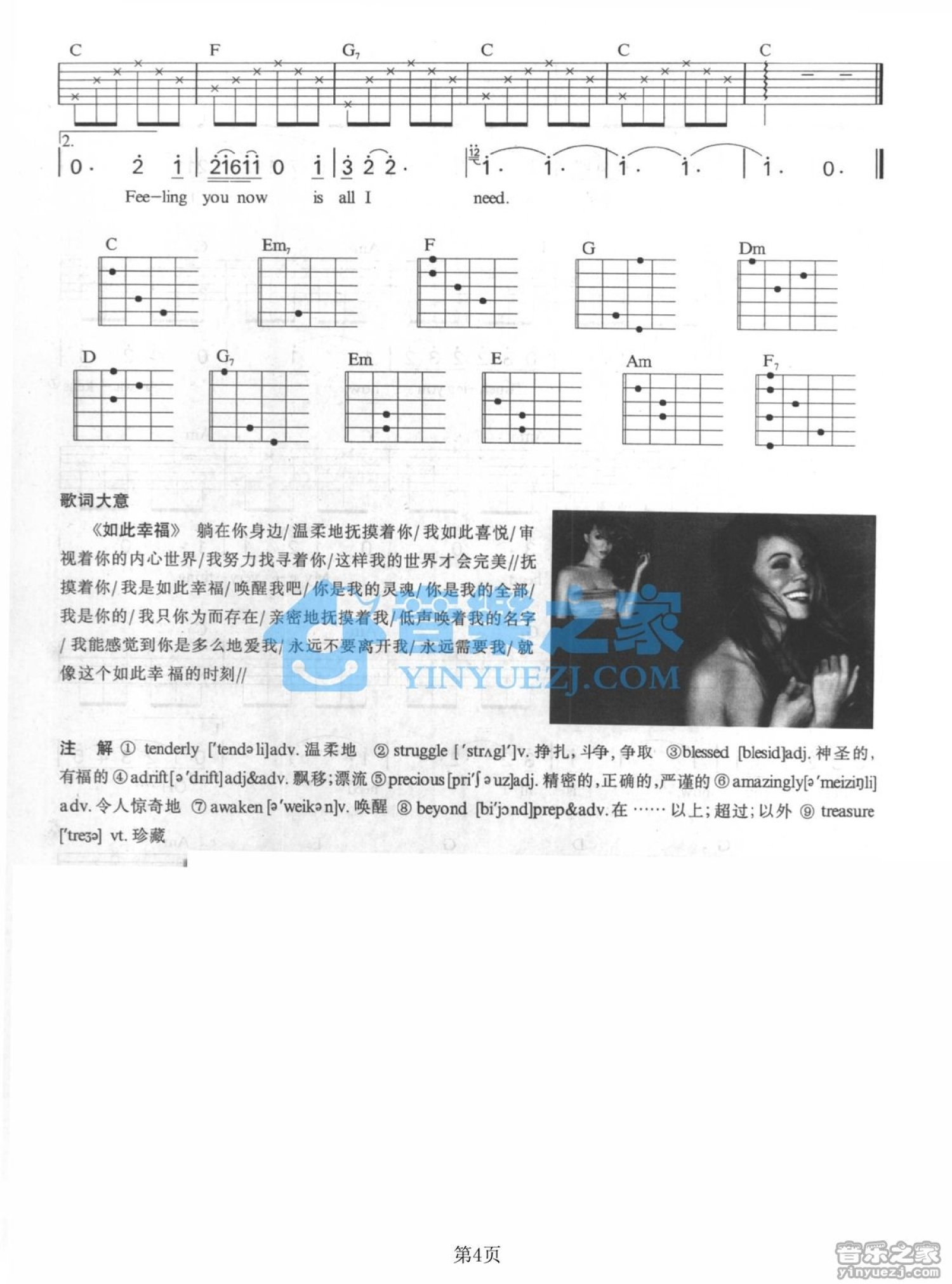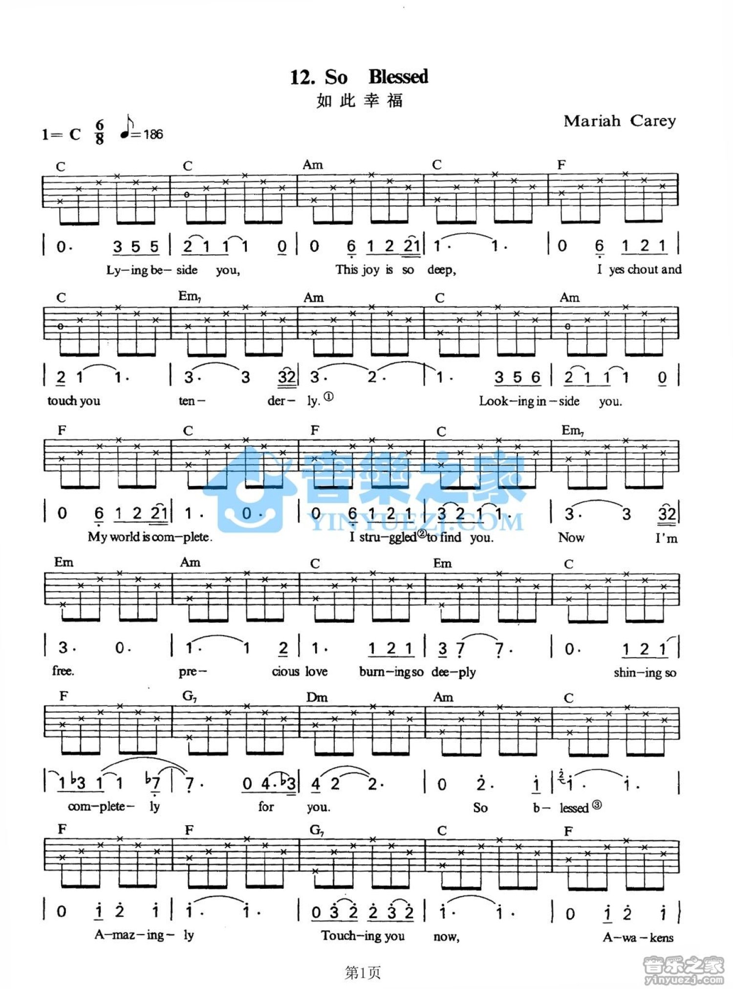 曲谱介绍: C调版MariahCarey《SoBlessed》吉他弹唱六线谱